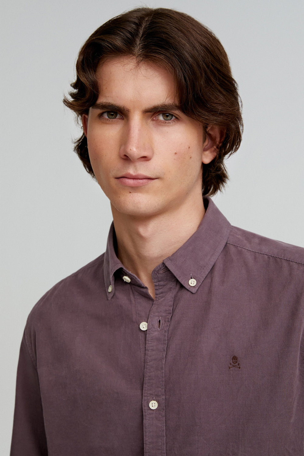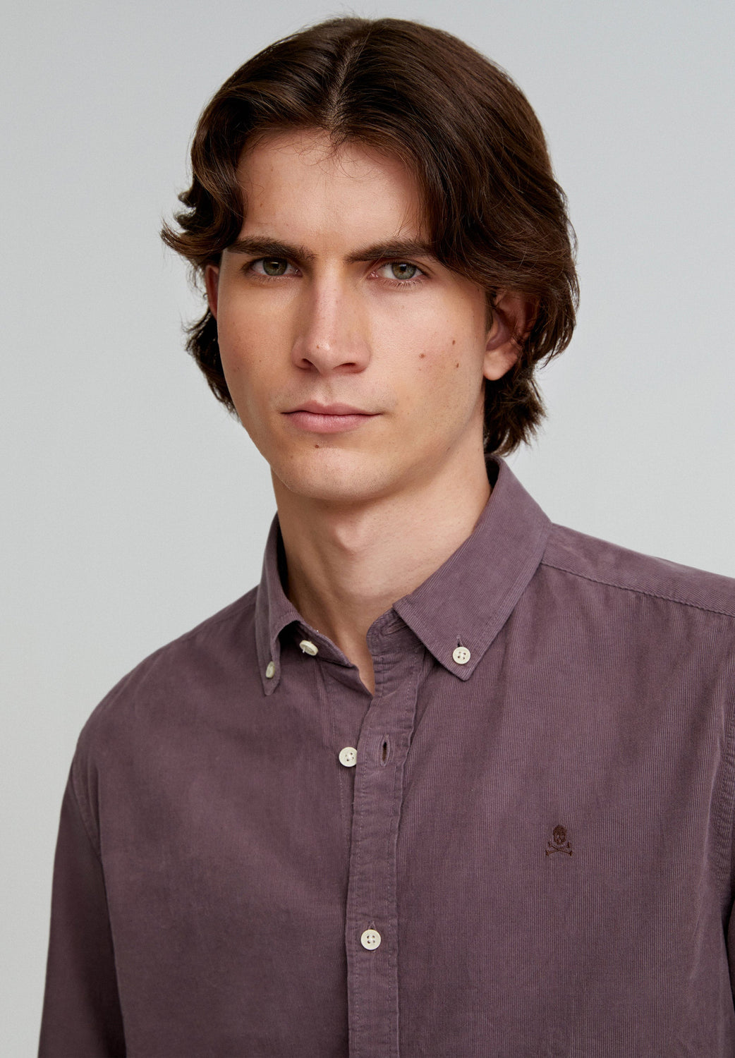 Camisa de bombazina confecionada em 100% algodão BCI. Regular fit, colarinho com botões e fecho com botões. Manga comprida terminada em punho com botões e logótipo bordado no tom.