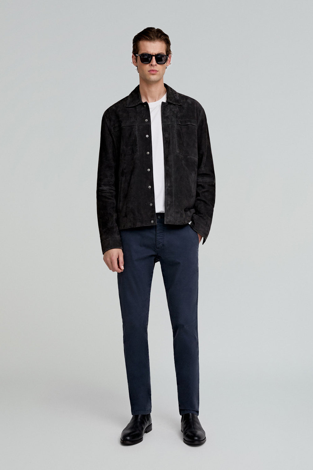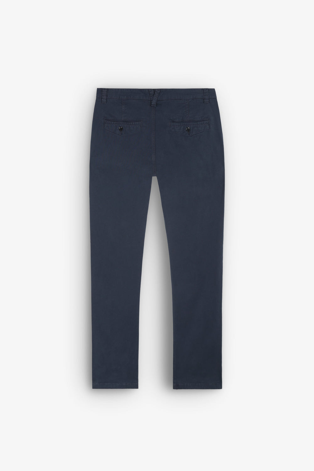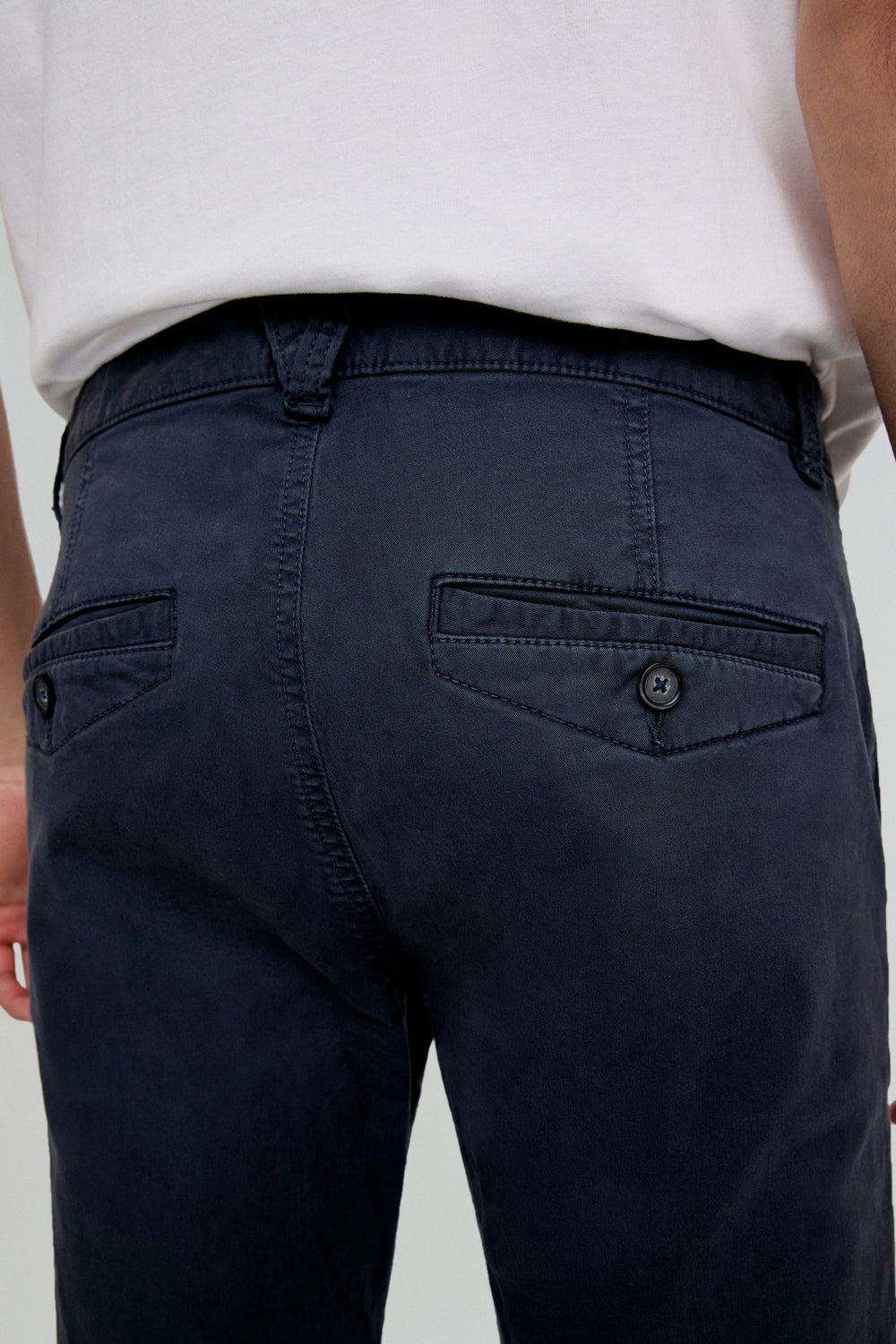 Pantalón chino casual confeccionado en mezcla de algodón ligeramente elástico. Cierre con botón y cremallera y bolsillos laterales y traseros. Trabillas en cintura.