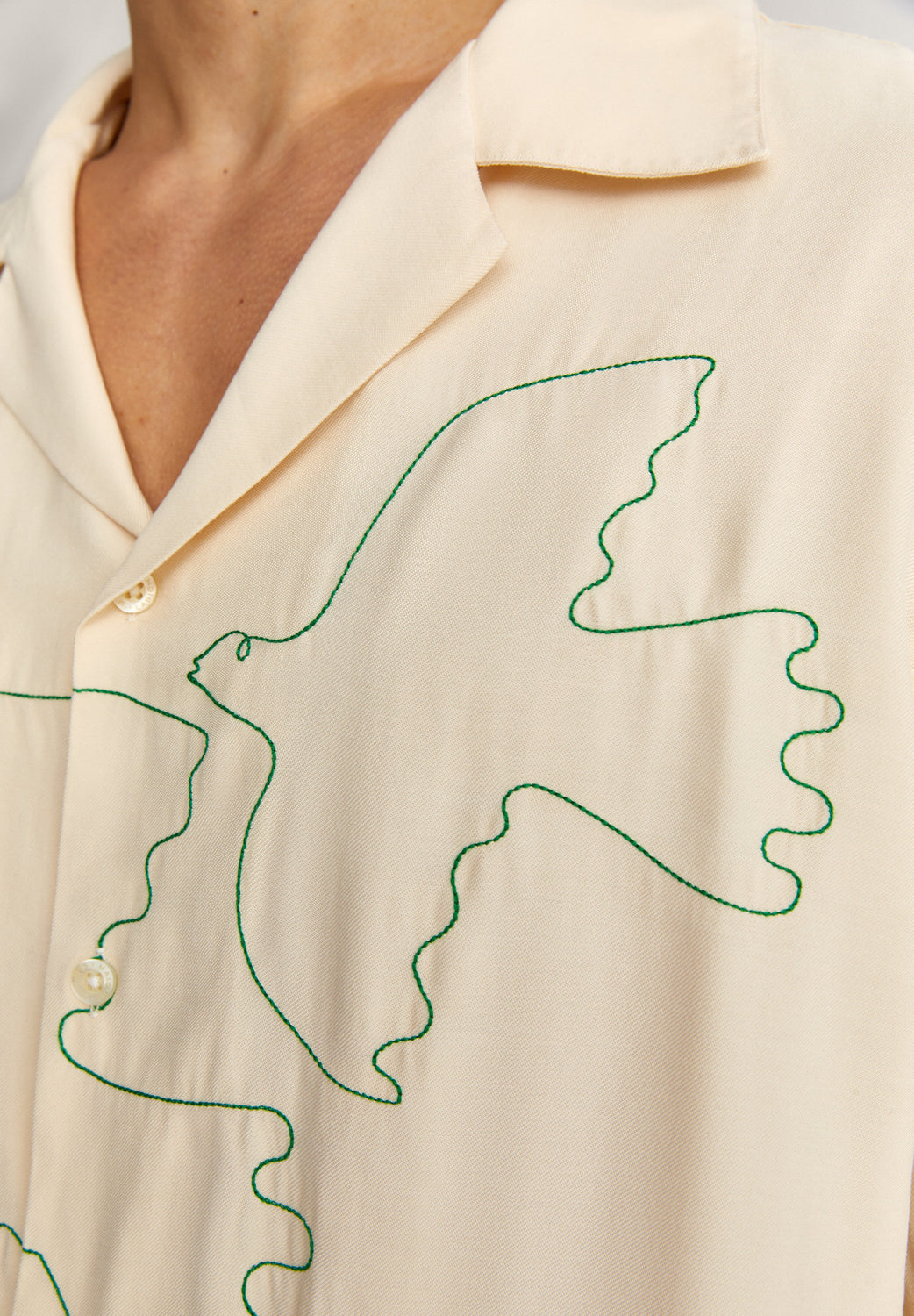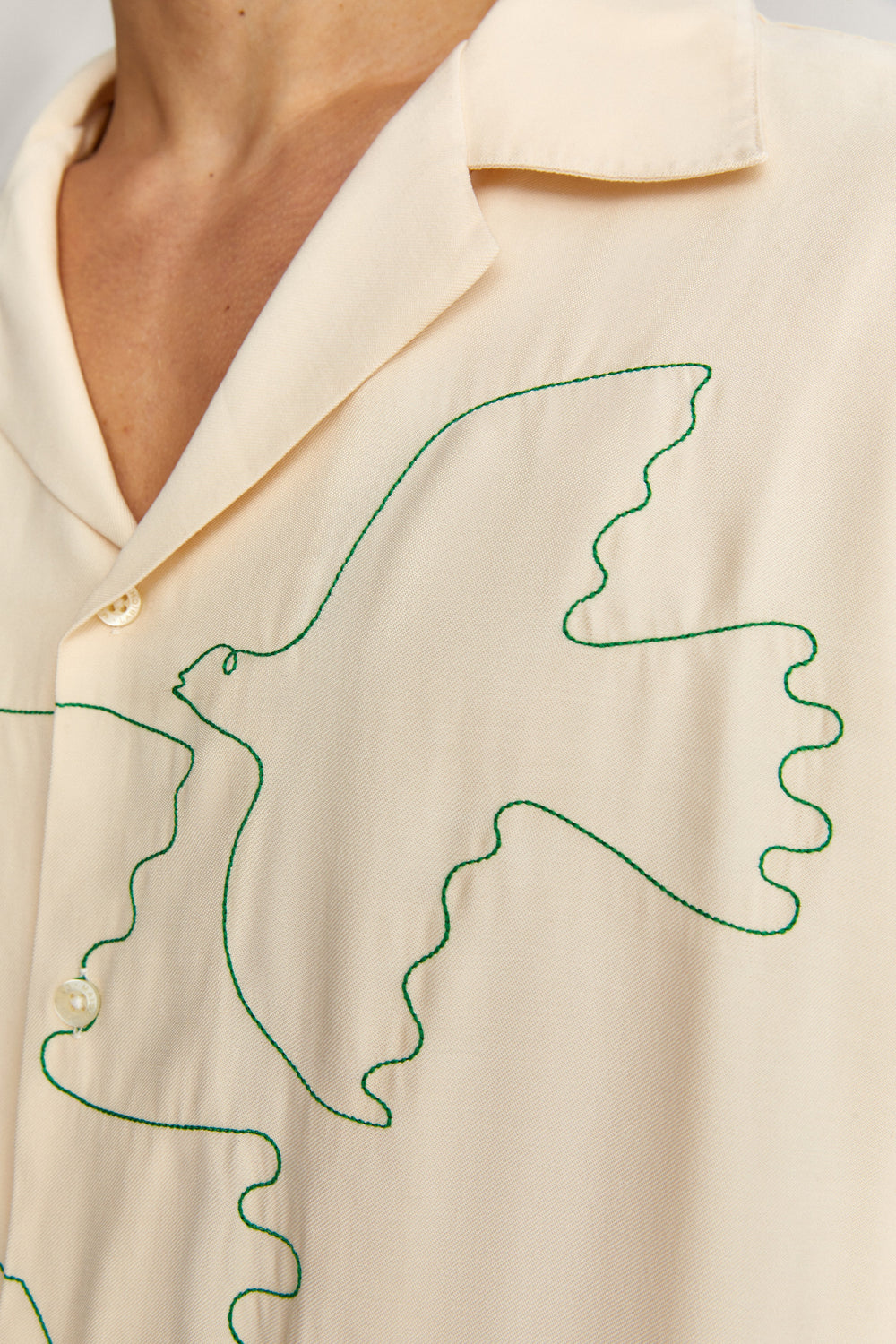 - Colarinho tipo tubarão e botões.