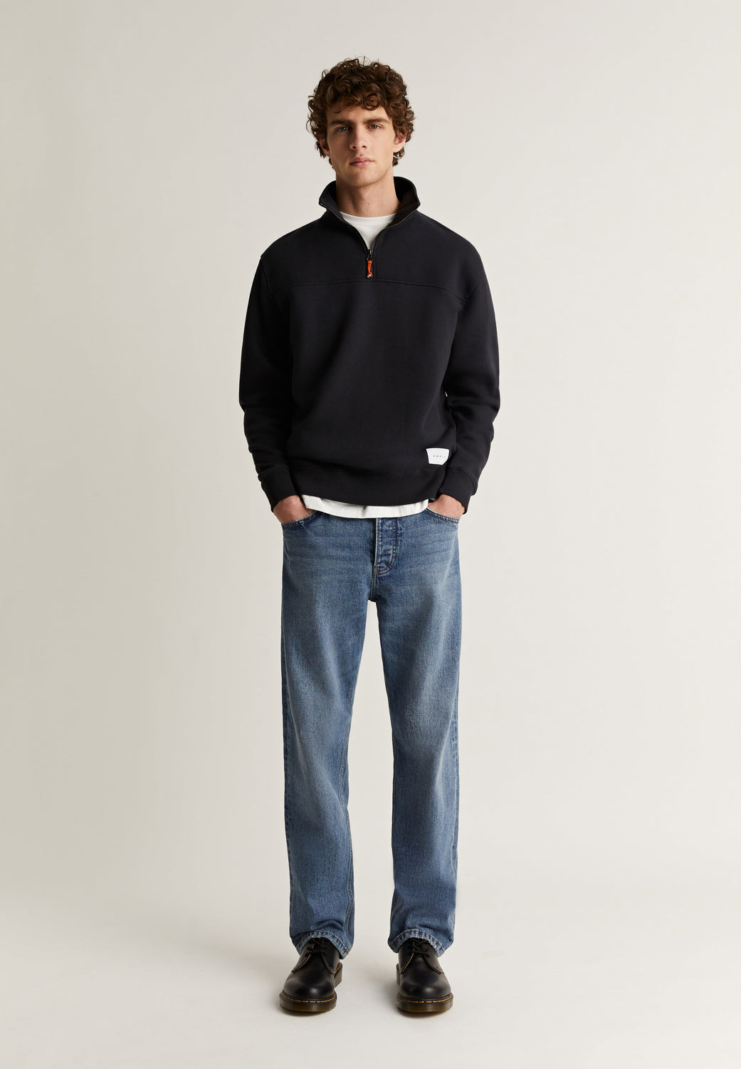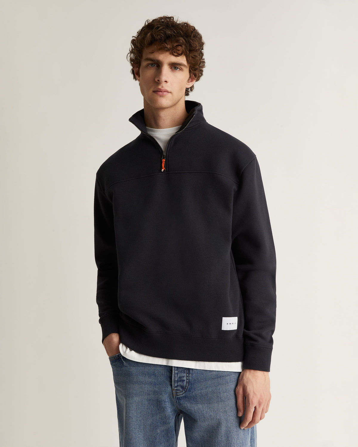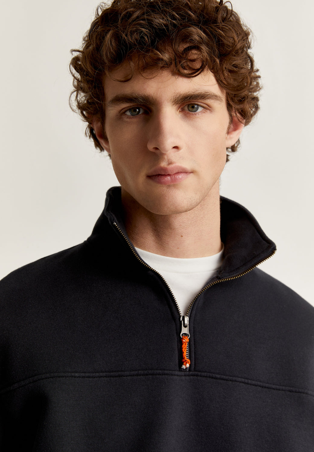 - Gola alta e fecho de meio zip.
