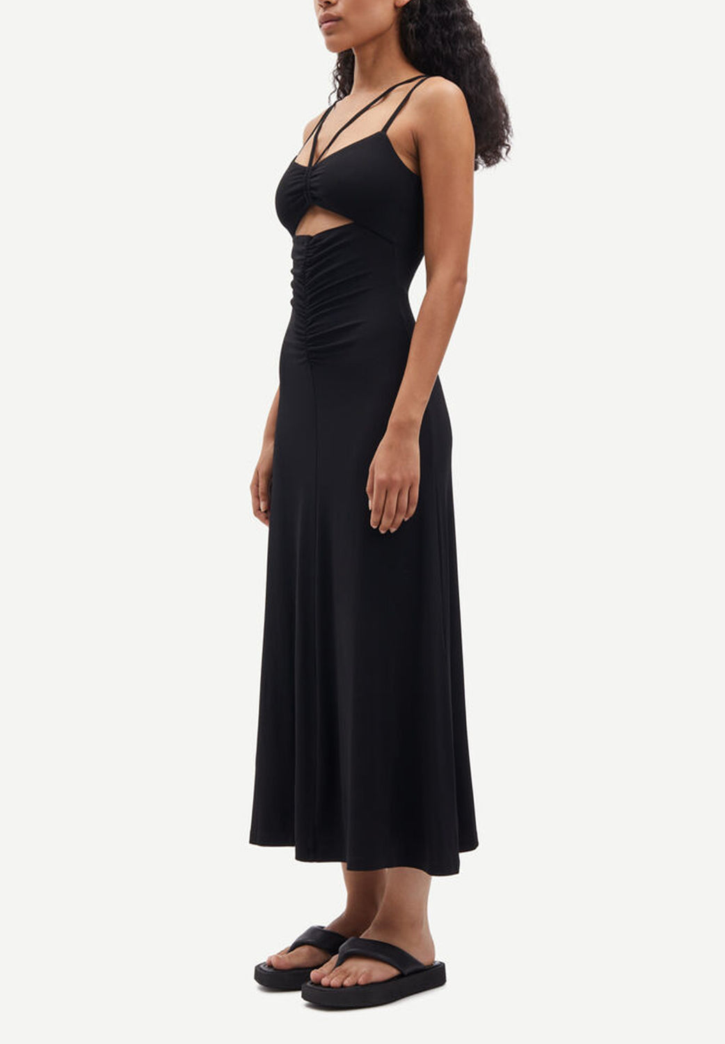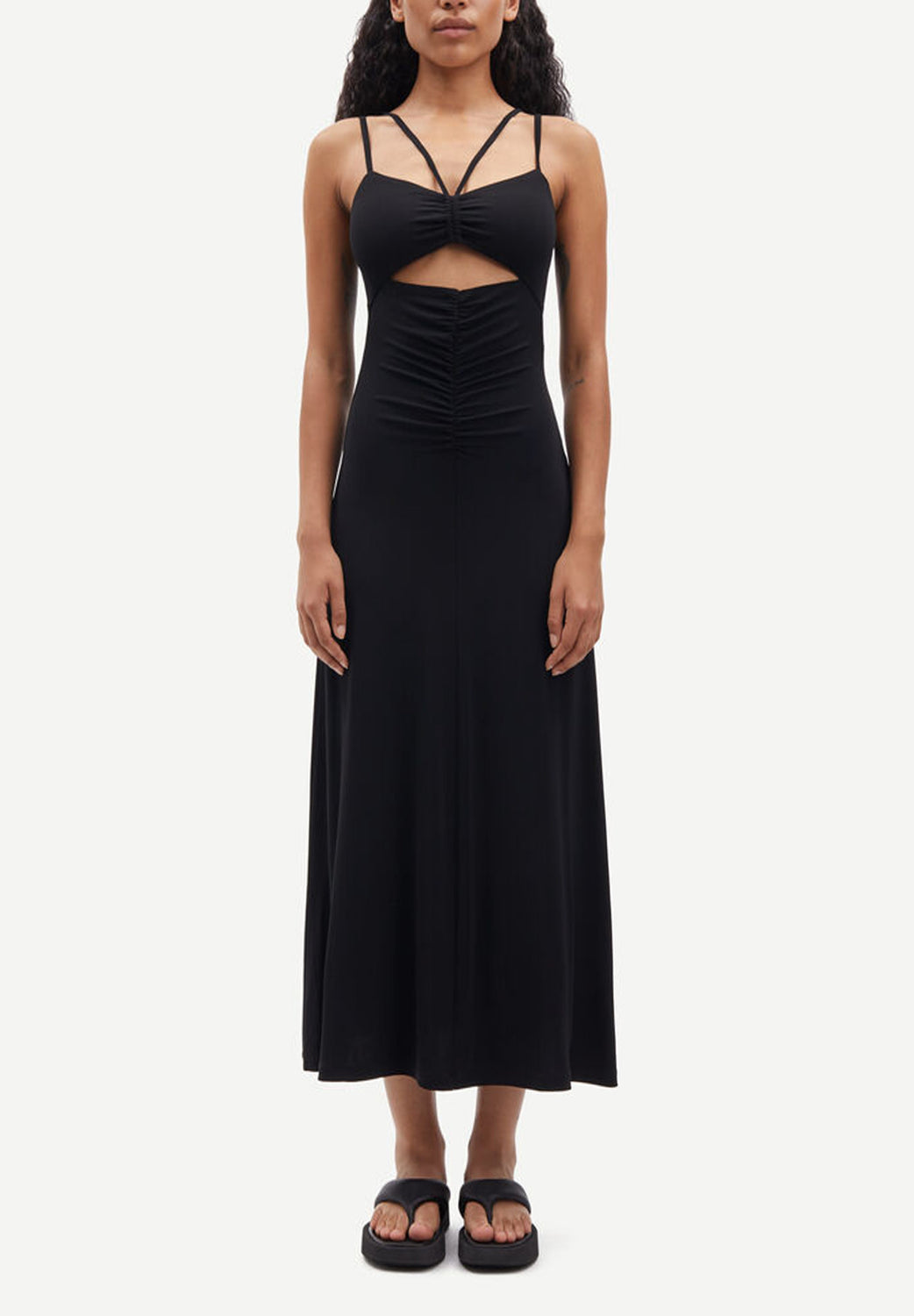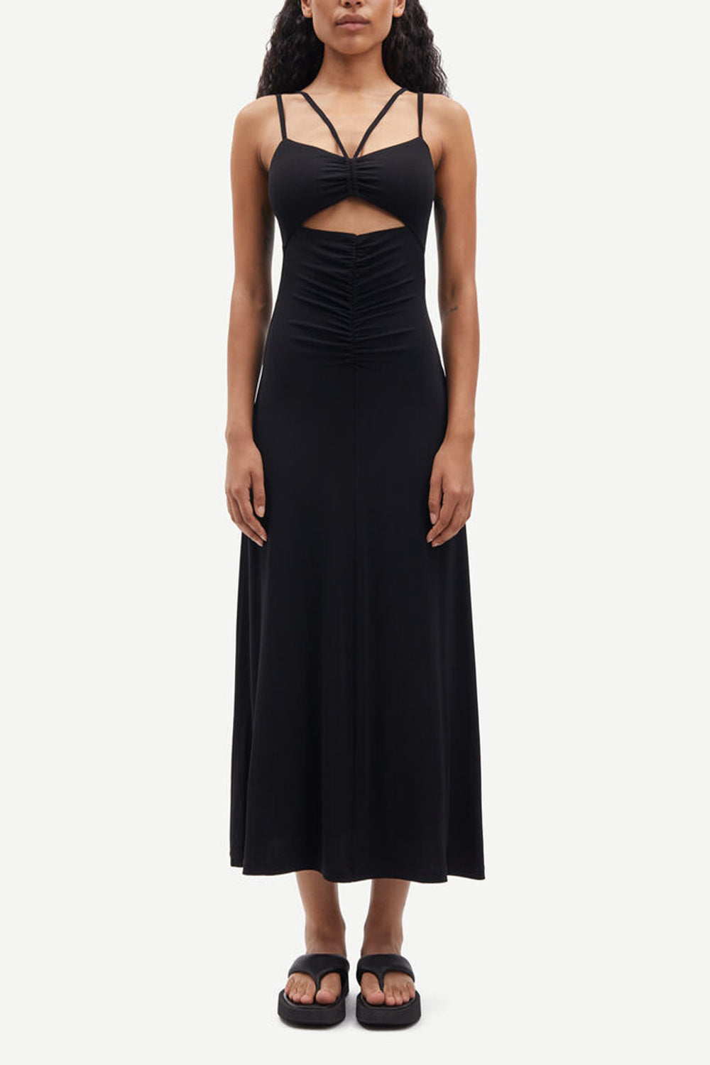 Vestido midi Samsoe confecionado em tecido mistura de viscose e elastano.