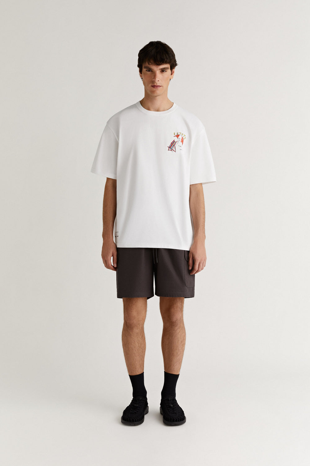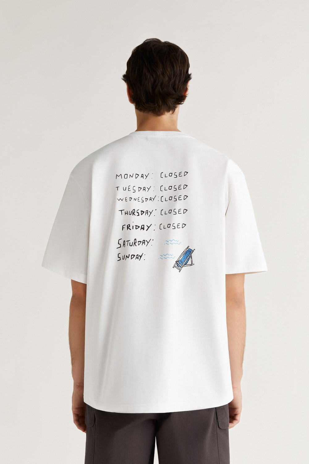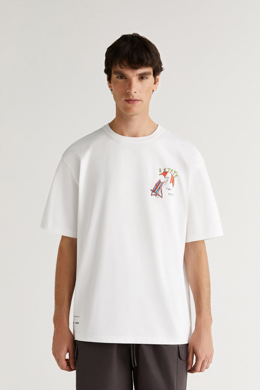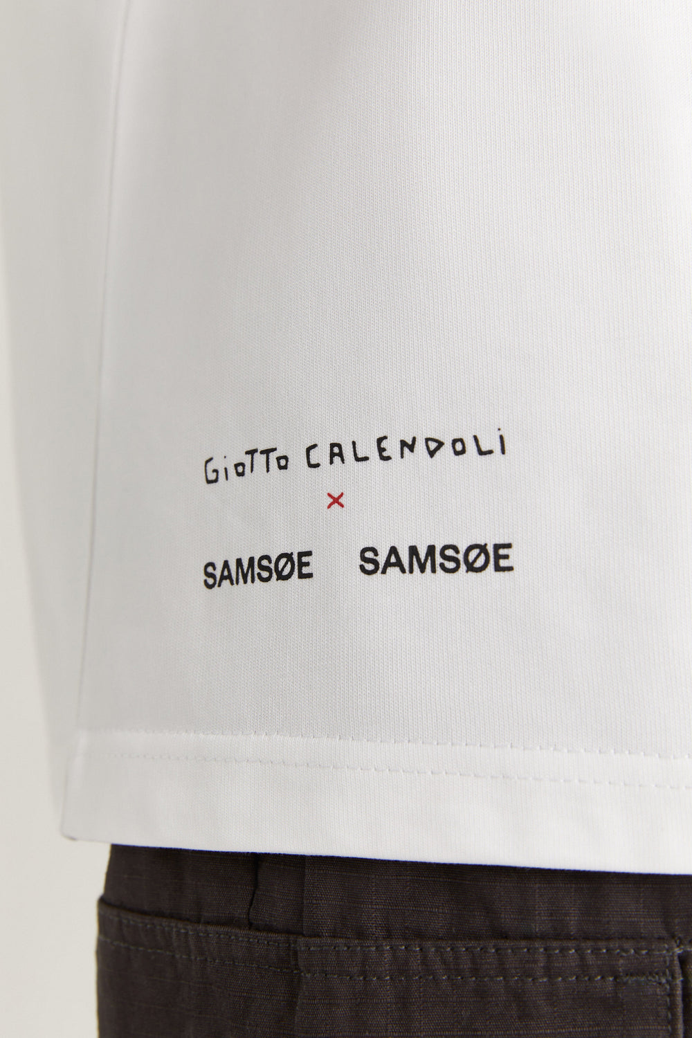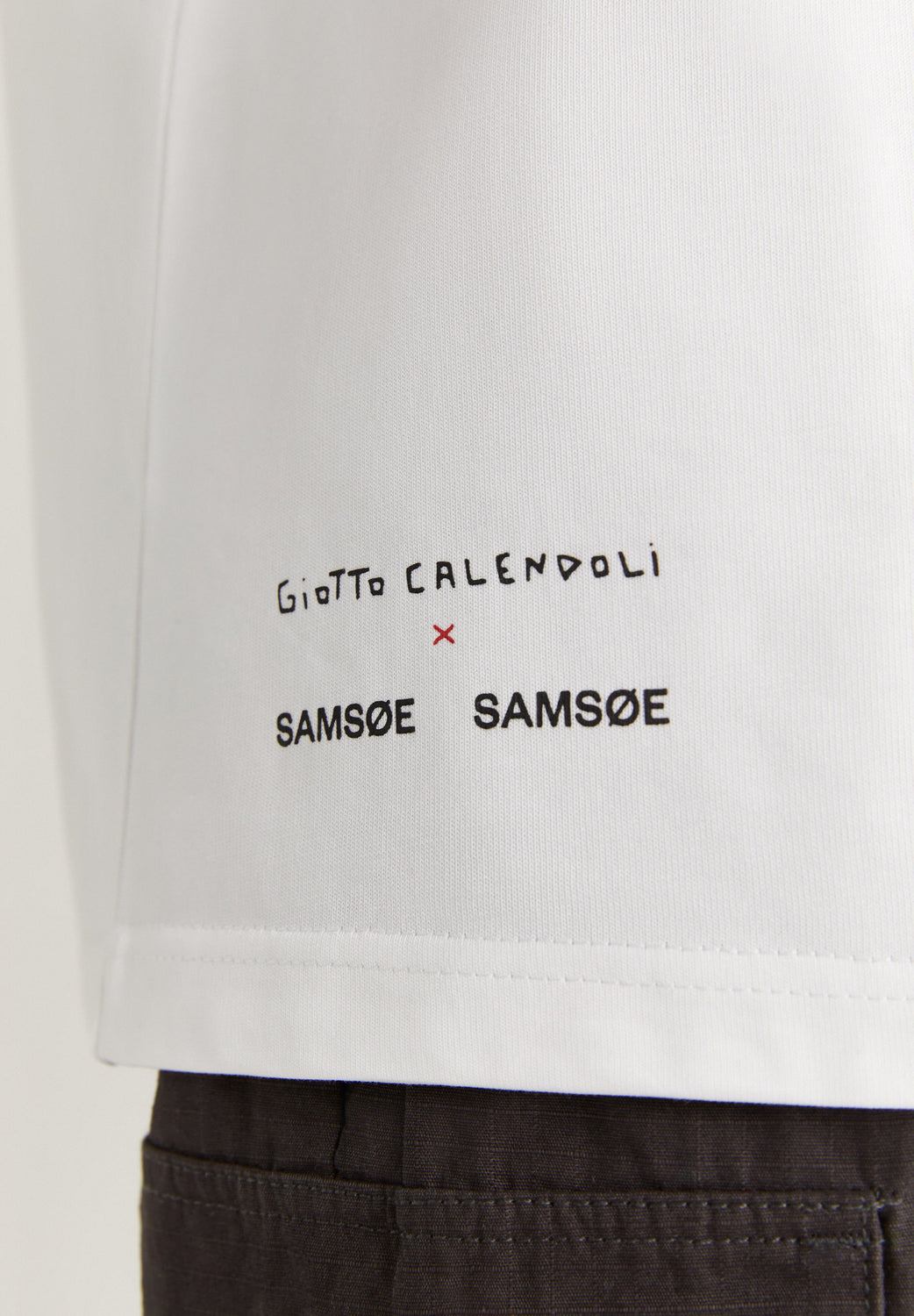 - Pormenor estampado no peito e atrás.