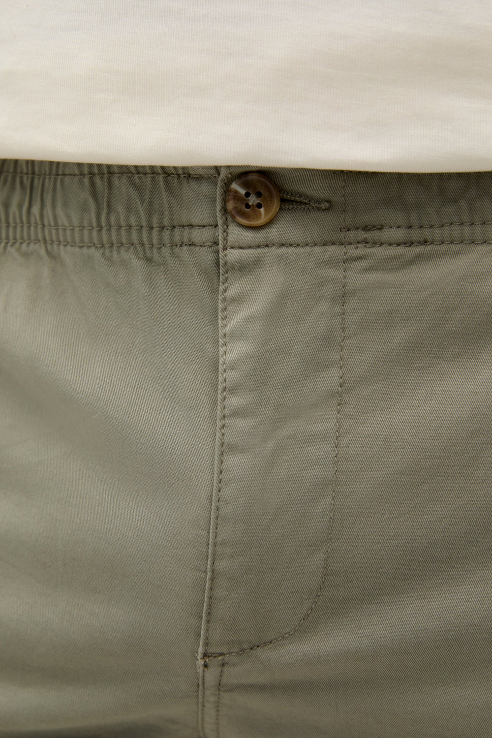 Calções bermuda confecionados em Algodão Orgânico. Bolsos laterais. Bolsos atrás com fecho de abotoadura. Zip e botão à frente Pormenor de logótipo nas costas.