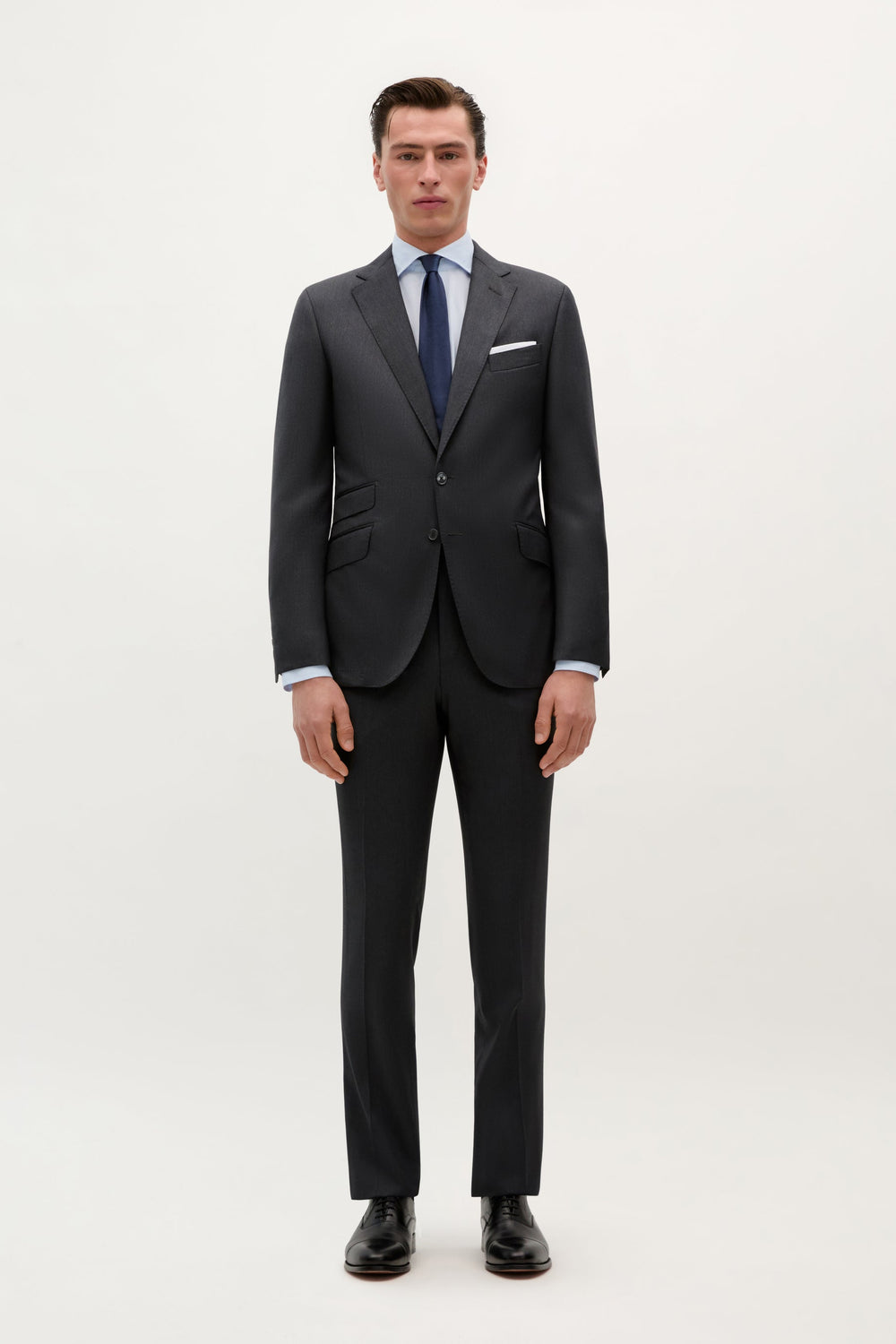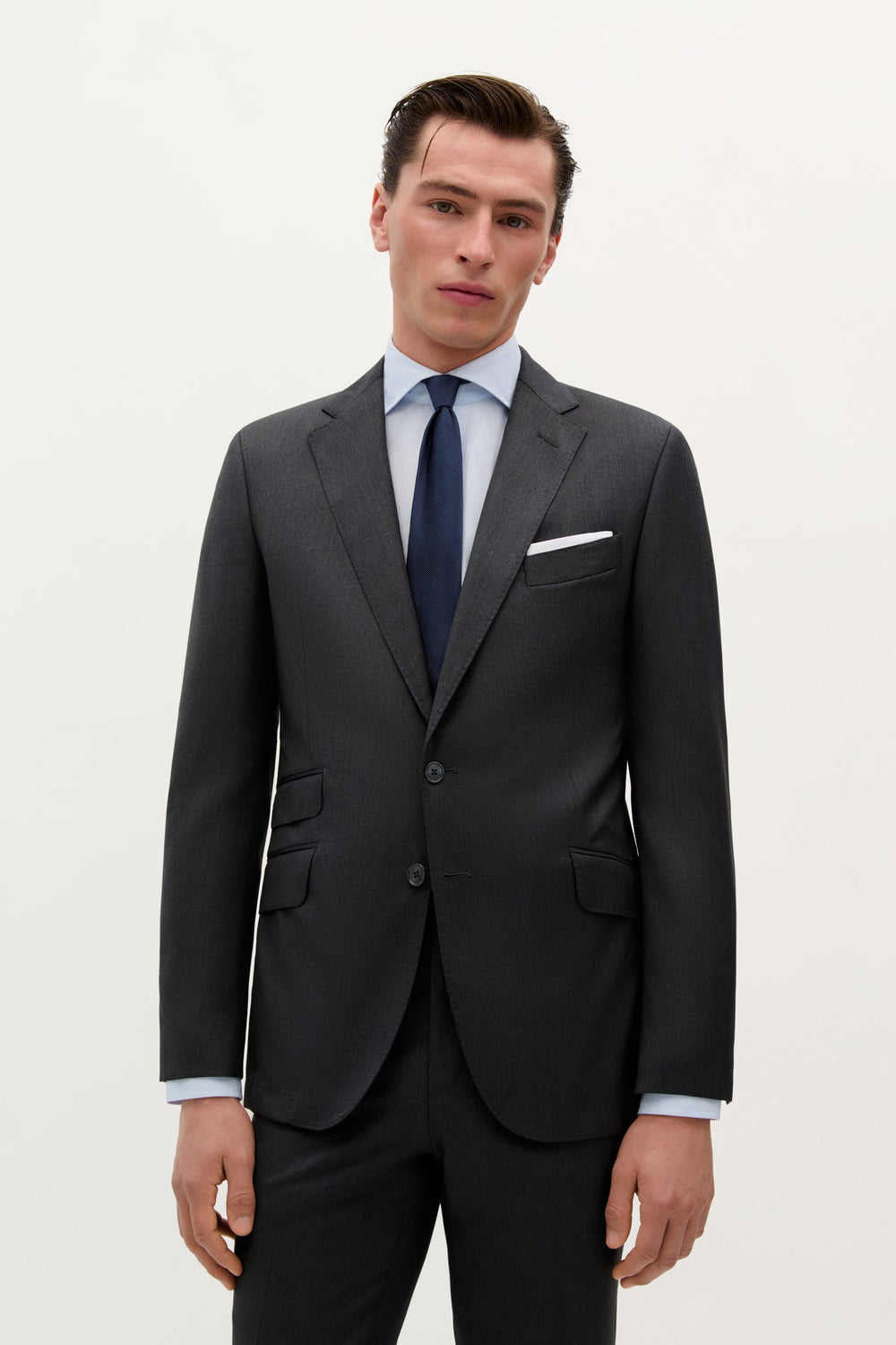 Americana confeccionada en 100% Lana Italiana. Cuello con solapa de muesca. Puño abotonado. Cierre mediante botones en parte frontal. Tres Bolsillos en frontal con solapa. Hecho en Portugal.