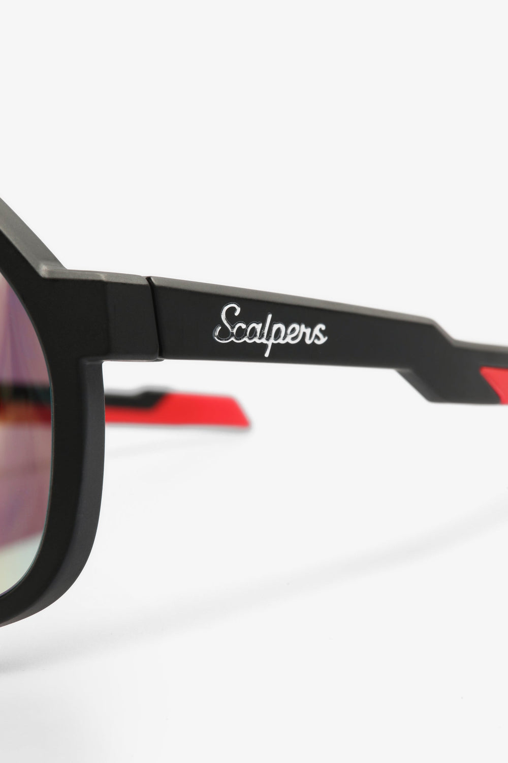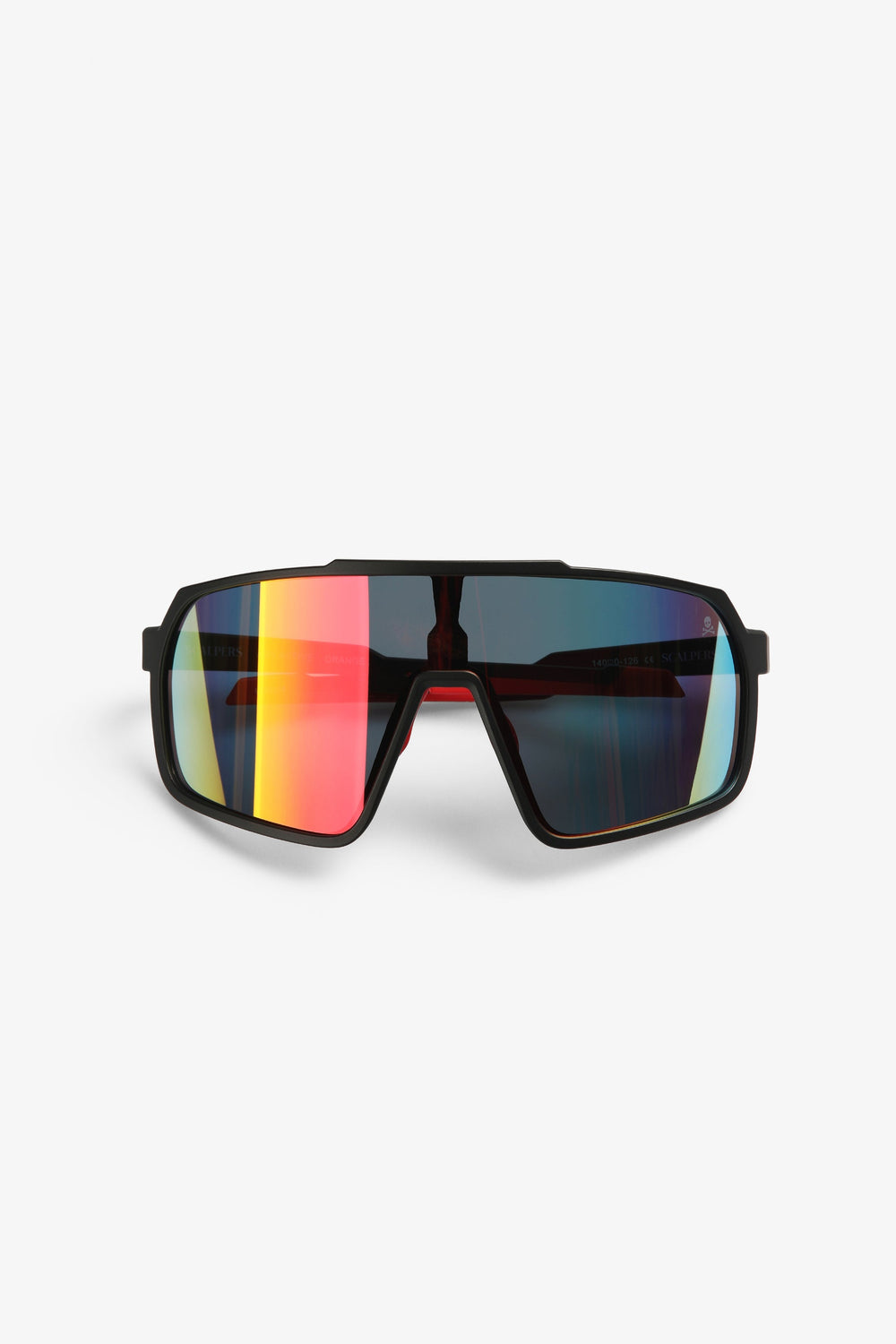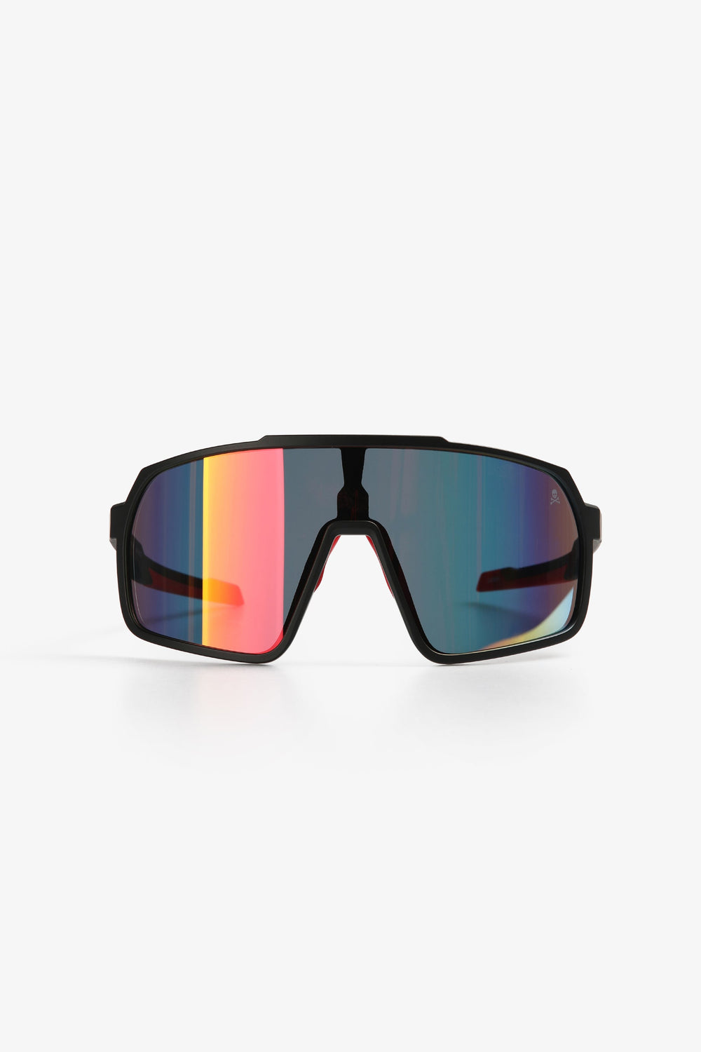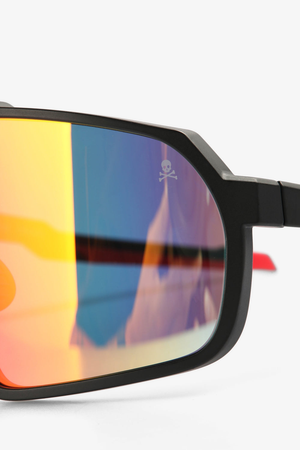 Óculos desportivos ultraleves com lentes panorâmicas fabricadas em TR19. Lentes espelhadas com proteção UV400. Aderência antiqueda.
