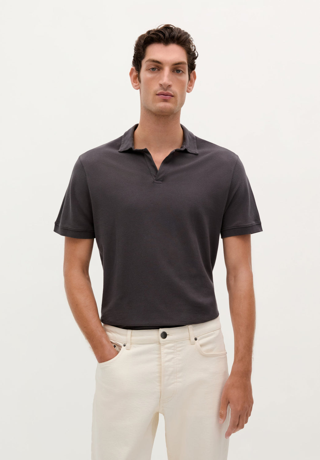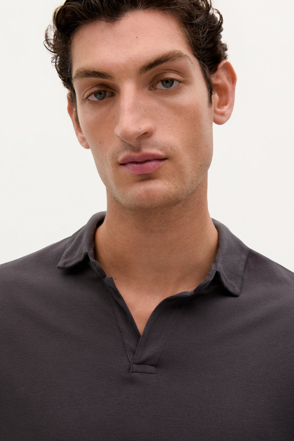 Camisa polo leve com tecido de piqué sem placket. Confeção em algodão 100% BCI. Corte regular fit. Colarinho clássico. Manga curta.