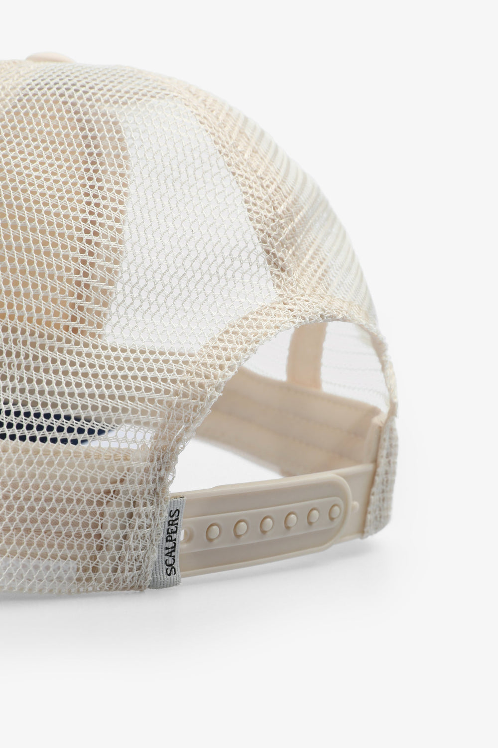 Boné tipo trucker confecionado em 100% algodão. Fecho ajustável atrás, mesh atrás e padrão à frente.