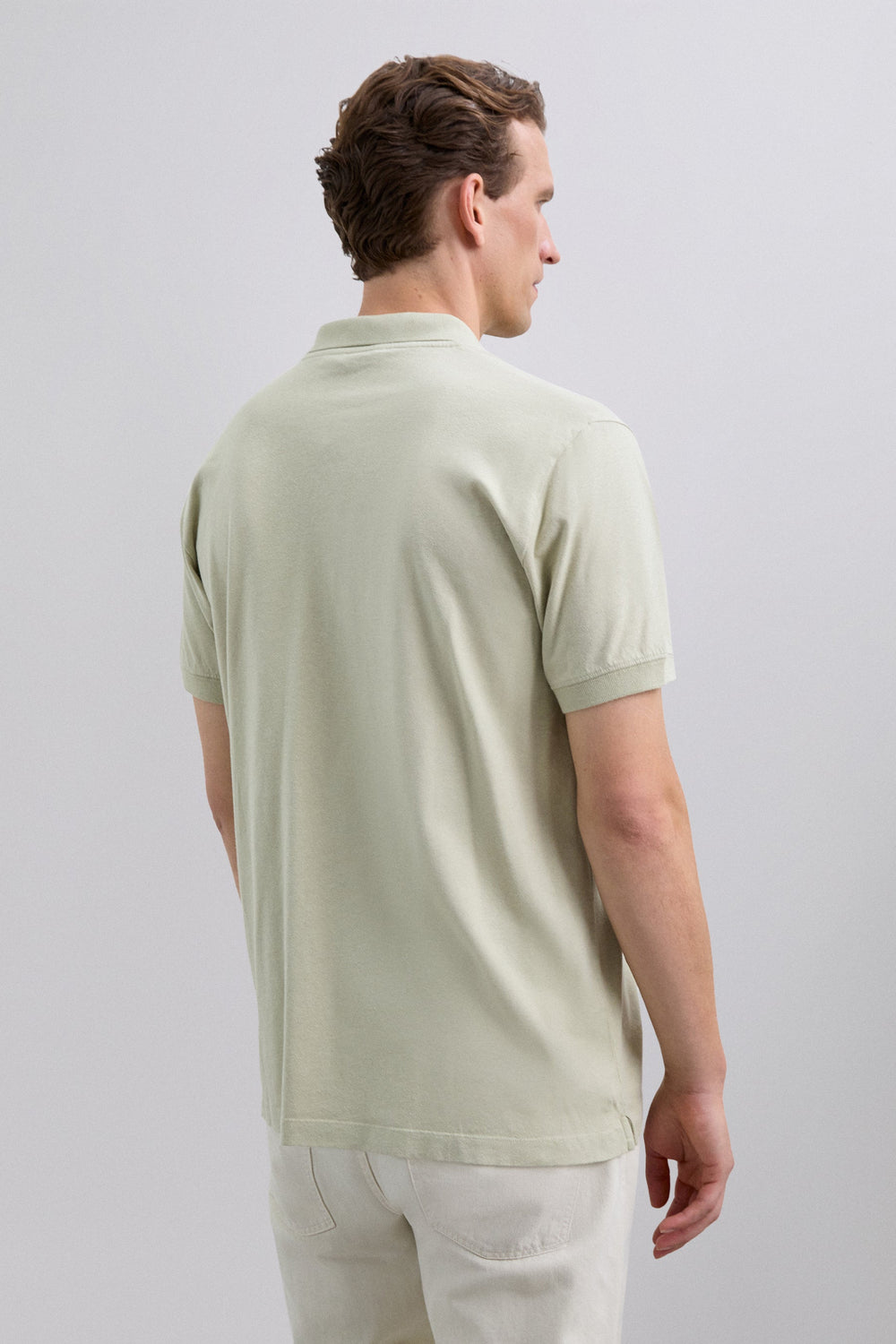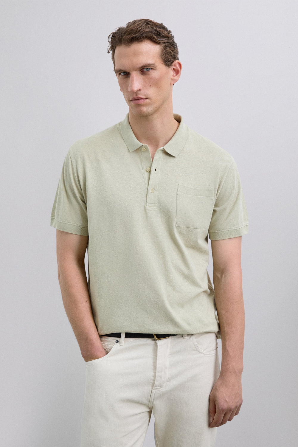 Camisa polo de confeção em algodão BCI. Regular fit, colarinho clássico e bolso frontal.