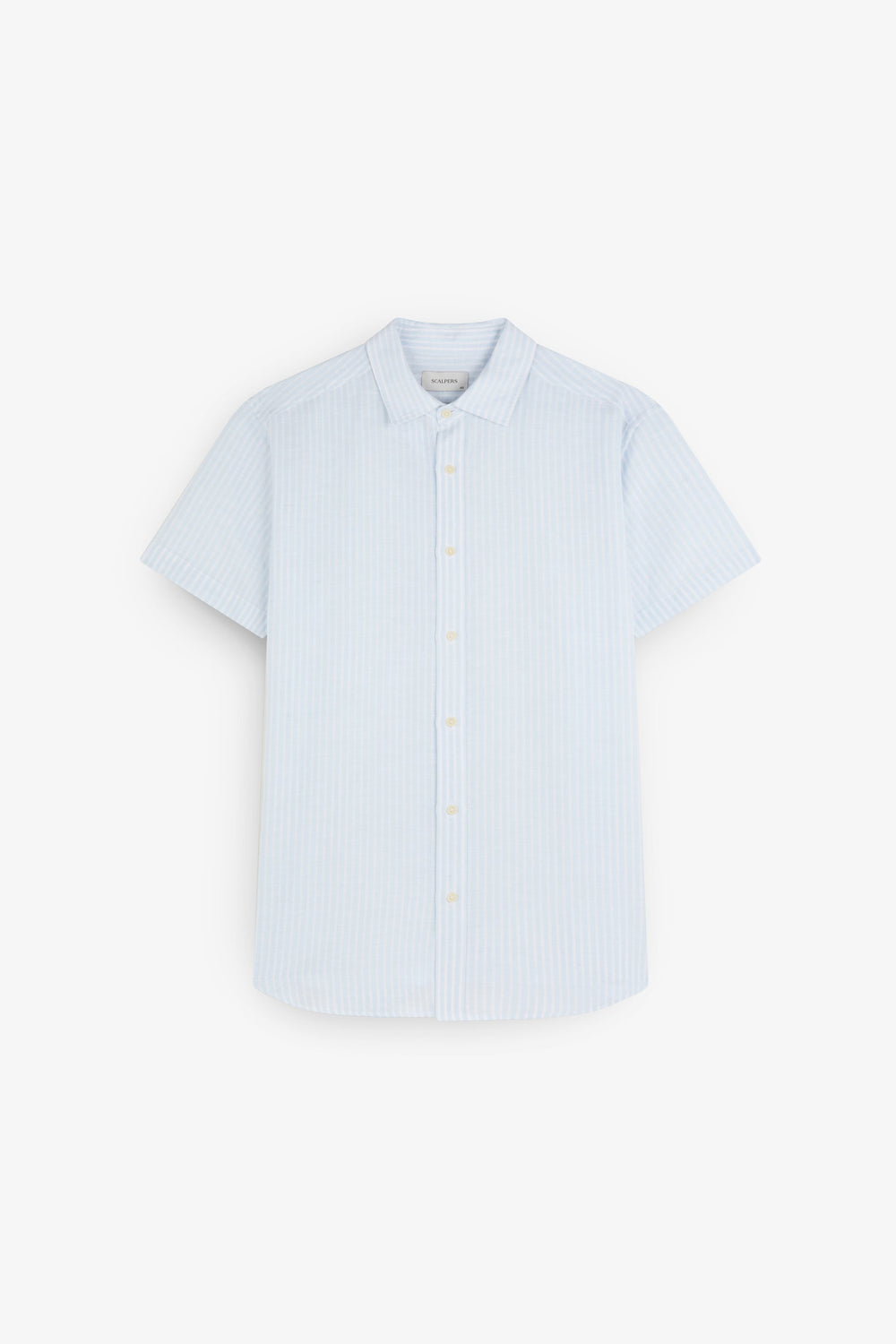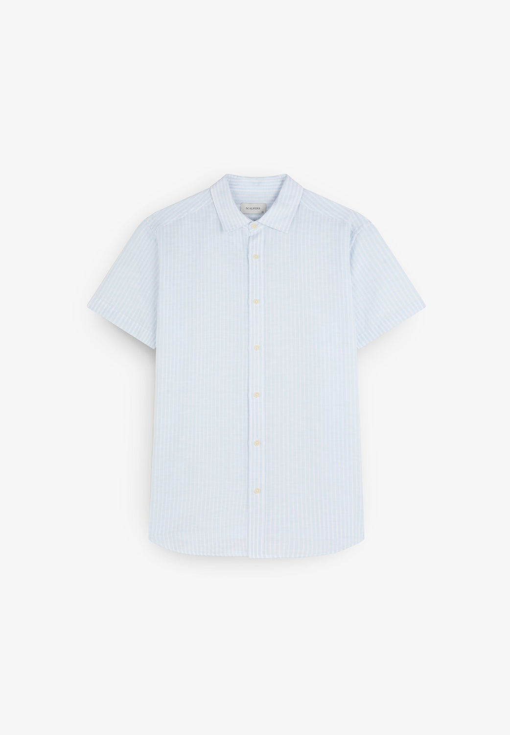 Camisa Resort confecionada em mistura de algodão e linho. Corte Regular Fit. Gola estilo pijama. Fecho com botões. Manga curta.