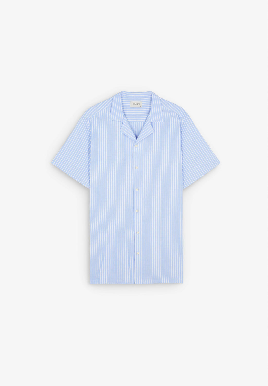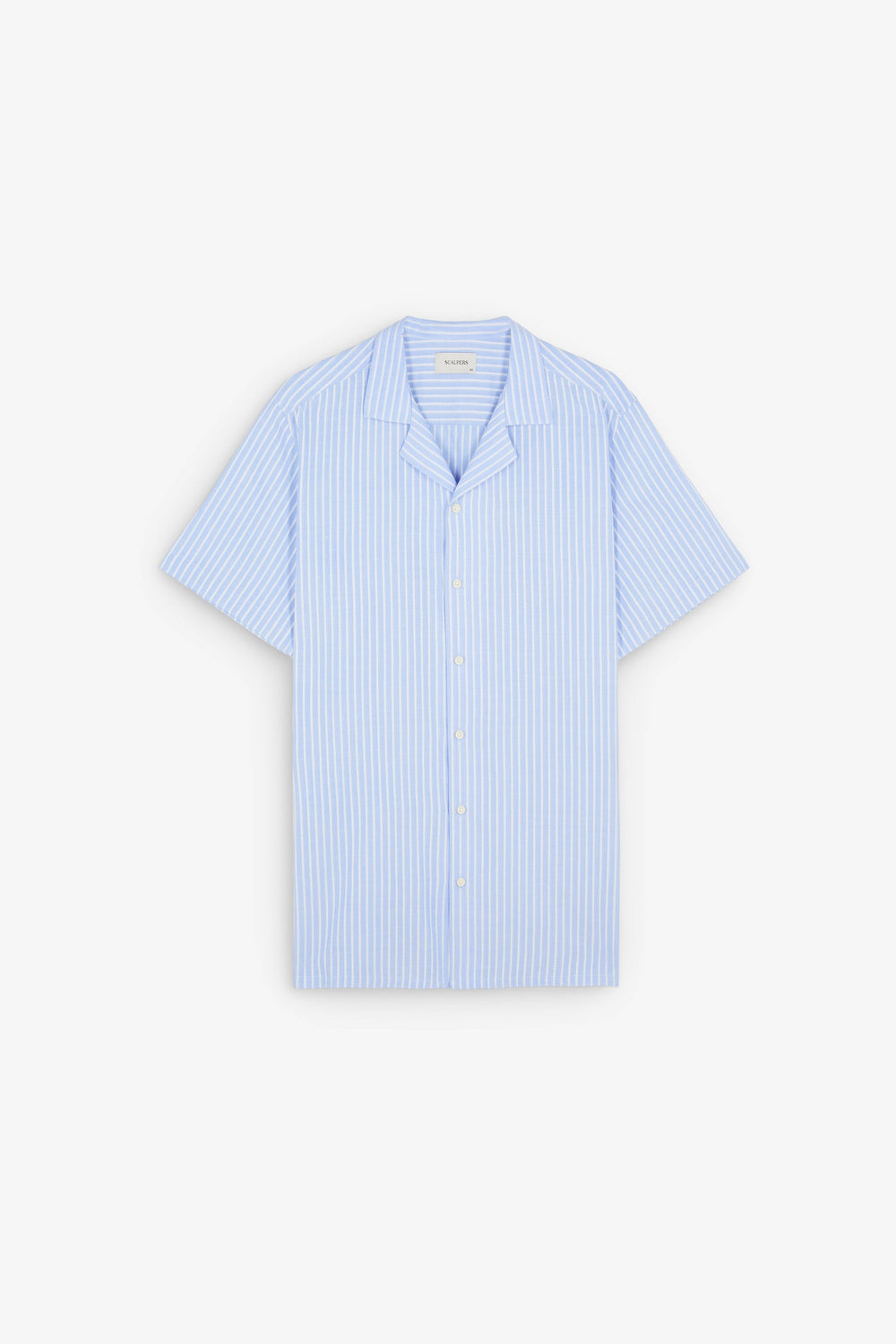 Camisa às riscas. Confeção em 100% algodão. Corte regular fit. Decote com botões. Fecho com botões. Manga curta.