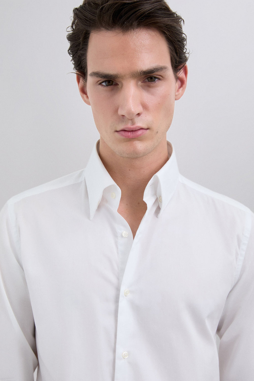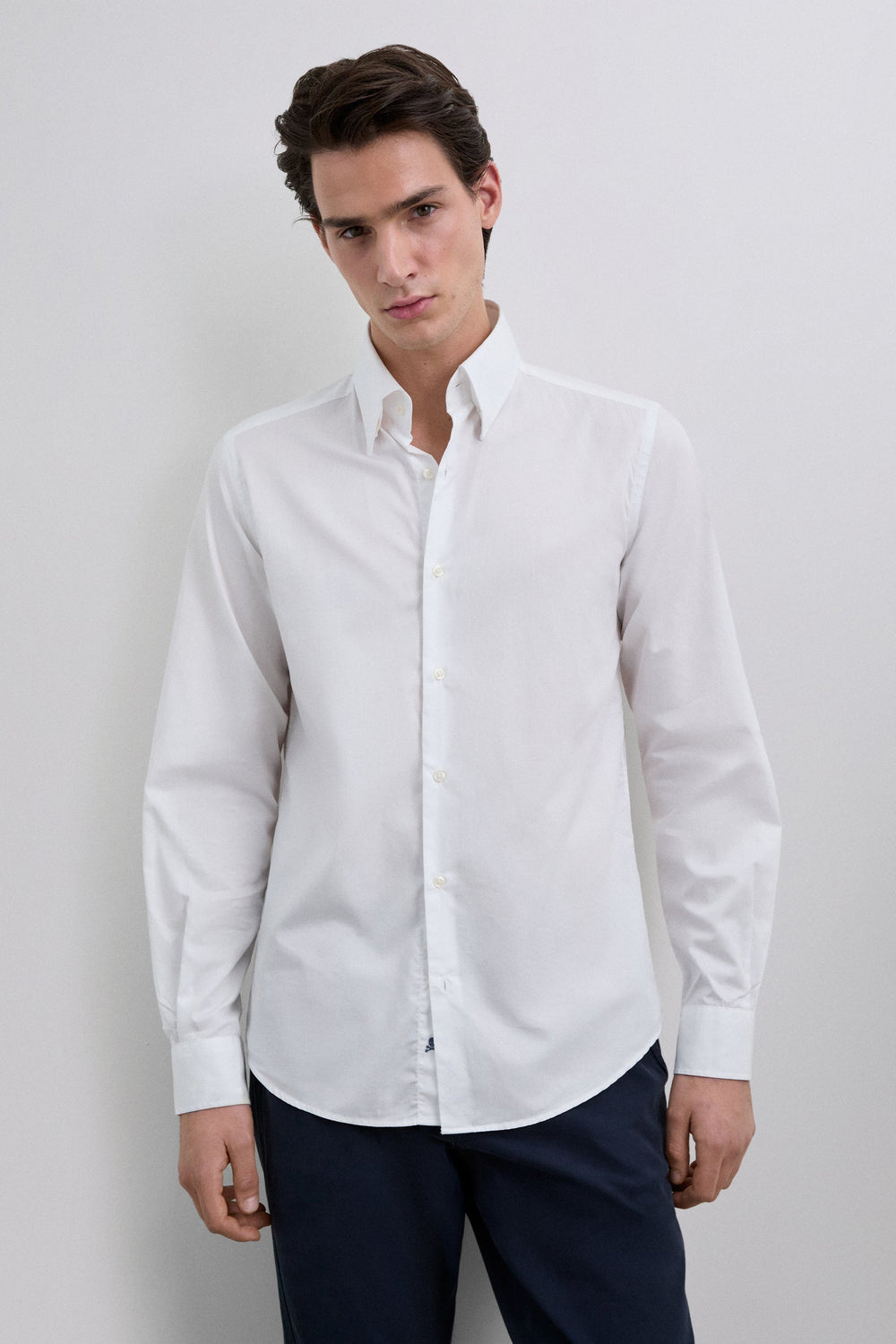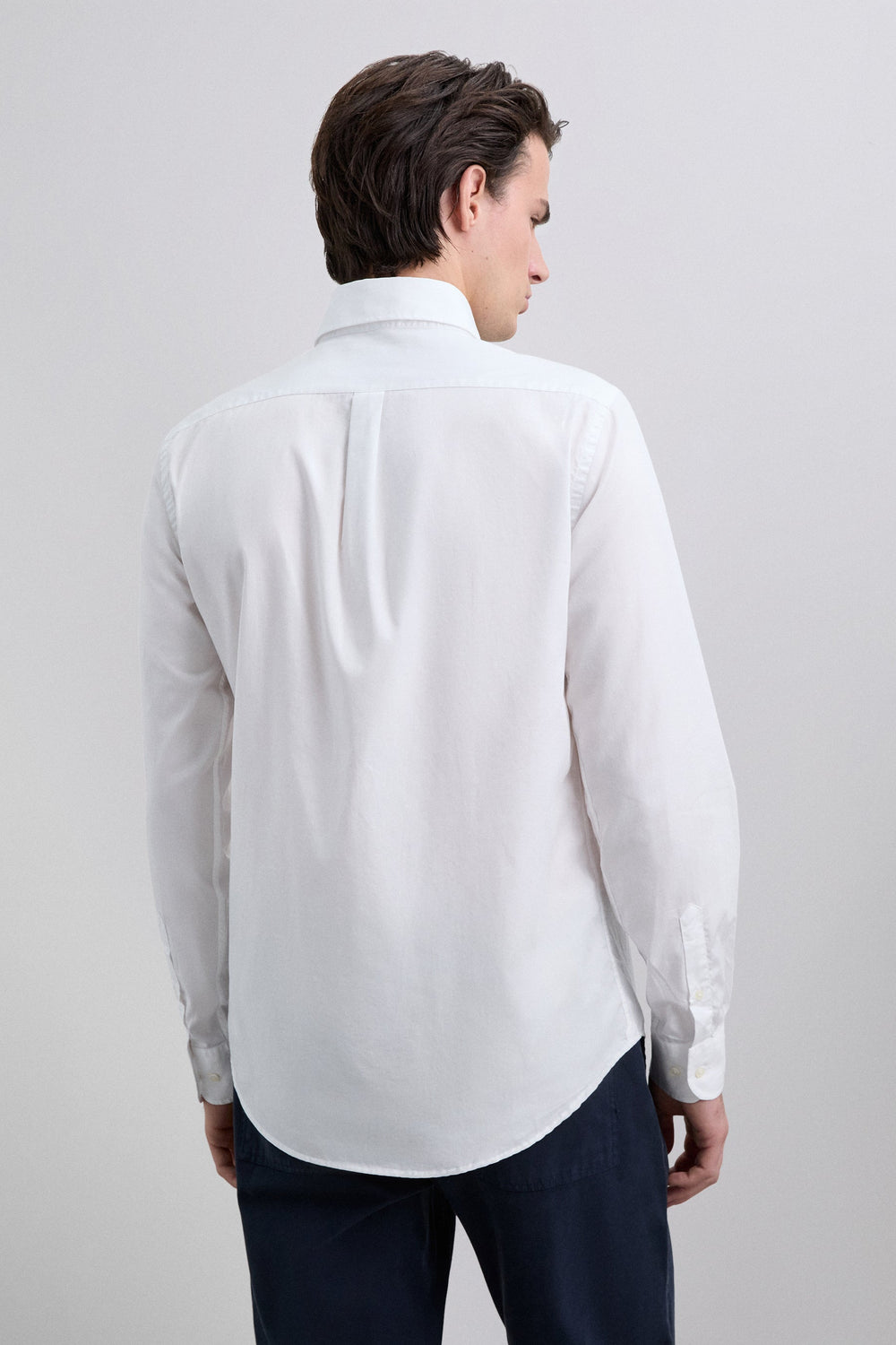 Camisa confecionada em tecido 100% algodão orgânico BCI. Manga comprida. Punho de botão ajustável. Logótipo bordado. Fecho com botões à frente. Fabricado em Portugal.