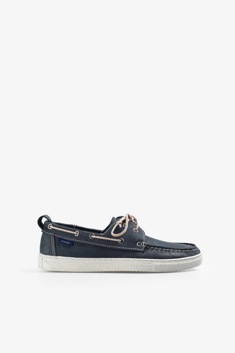Sapatos tipo de vela. Confeção em 100% pele. Fecho com cordões em contraste. Sola de borracha recycled. Pormenor de etiqueta de logótipo lateral.