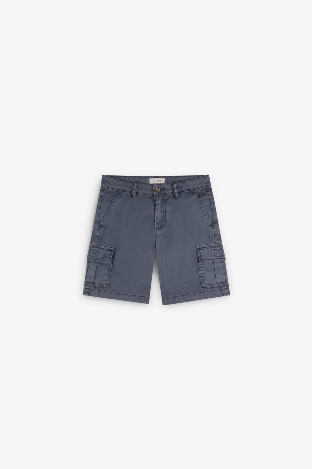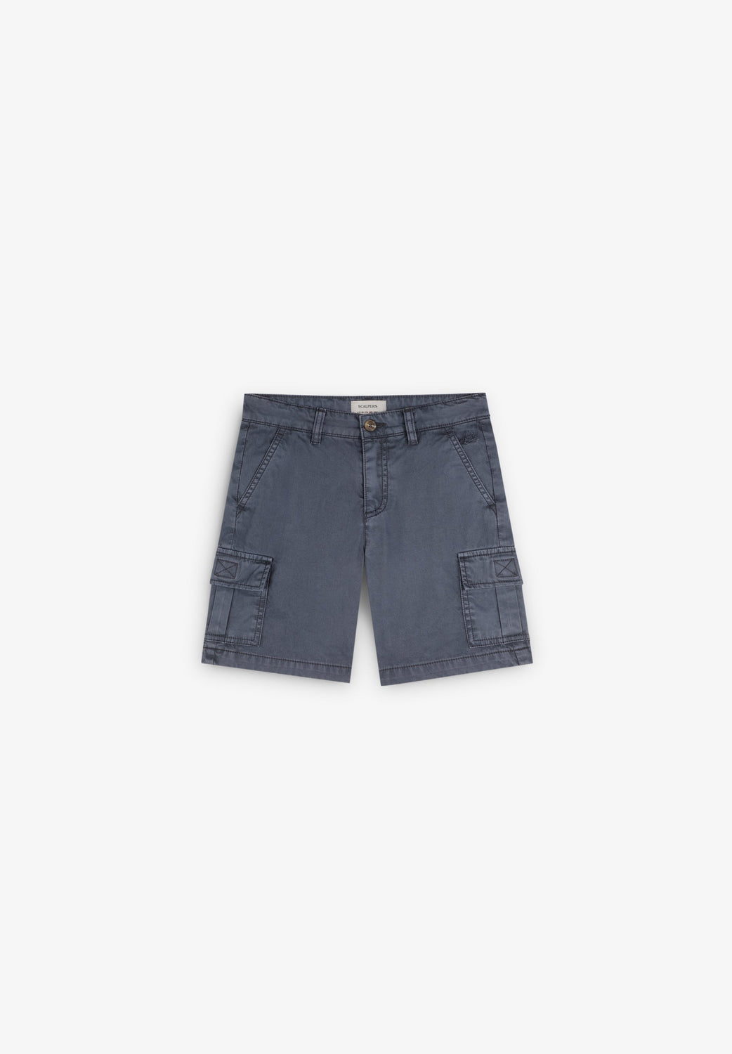 Calções bermuda confecionados em 100% algodão orgânico BCI. Bolsos à frente, tipo patch nas costas e com placket nas laterais. Fecho com botão à frente. Pormenor de logótipo.