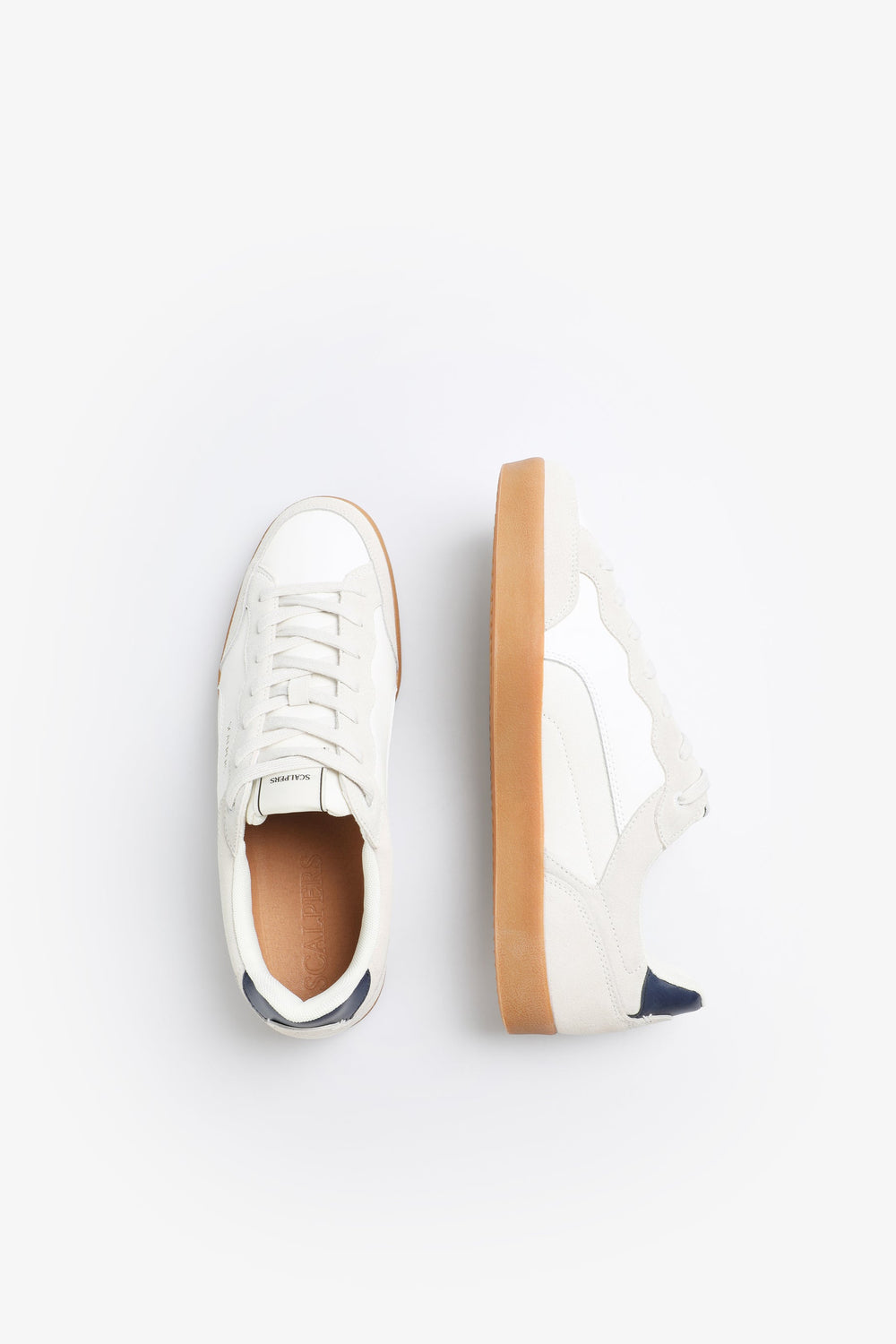 Sapatilhas confecionadas em pele de bovino. Cordões em contraste. Logótipo gravado na lateral e na língua. Sola de borracha. Palmilha em rede respirável. Forro.
