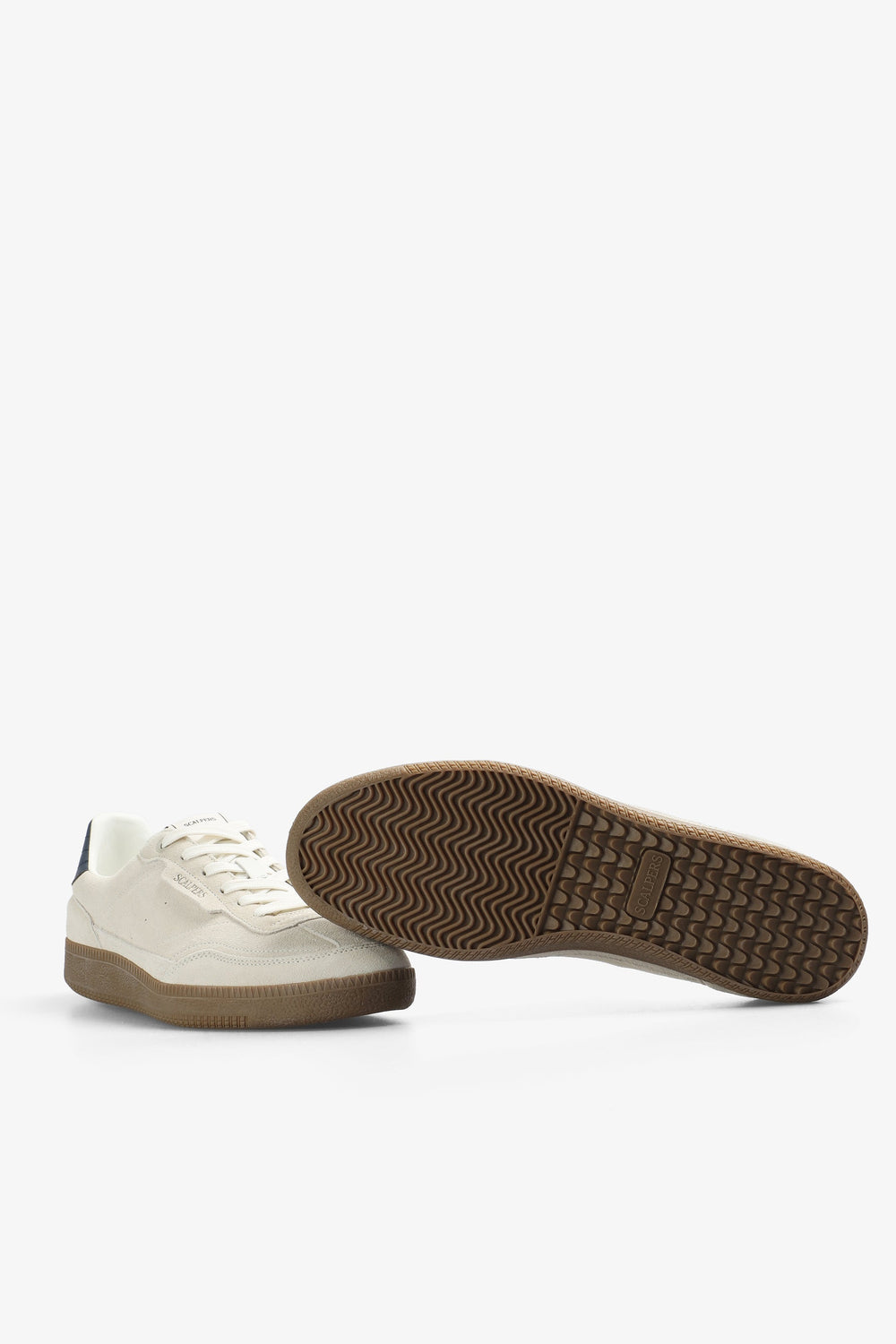 Sapatilhas de estilo rétro. Parte superior em 100% pele. Sola fina com pormenor em contraste. Bordados. Pormenor de logótipo na lapela.