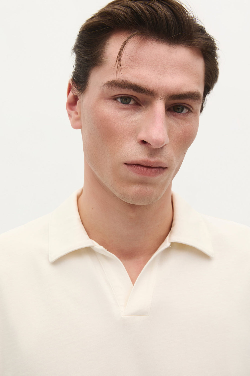 Polo confecionado em tecido macio de 100% algodão BCI. Regular fit, decote em V e manga comprida.