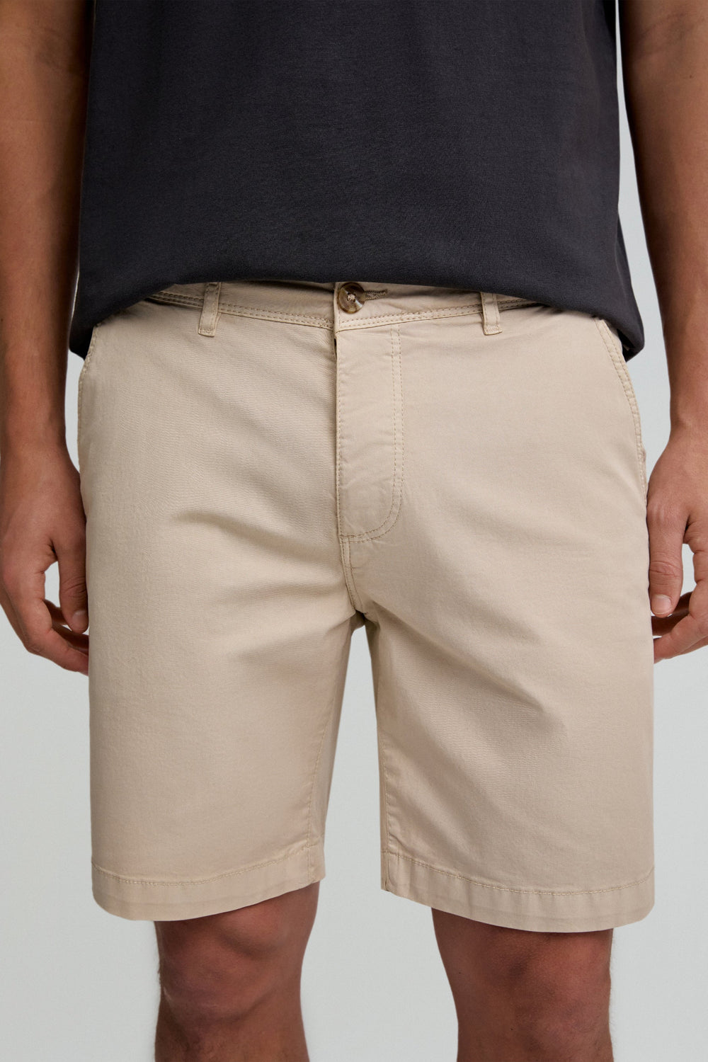 Bermuda clásica efecto lavado. Confeccionada en mezcla de algodón ligeramente elástico. Corte Regular fit. Cierre con botones. Bolsillos laterales con boca inclinada. Bolsillos traseros de vivo y cierre con botón. Trabillas en cintura.