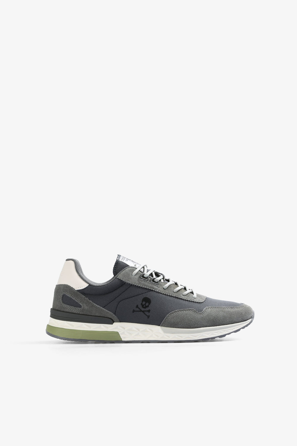 Sapatilhas com logótipo lateral a contrastar confecionadas em camurça e nylon. Fecho com cordões no tom, sola de EVA e TPR e pormenor de língua com etiqueta personalizada.