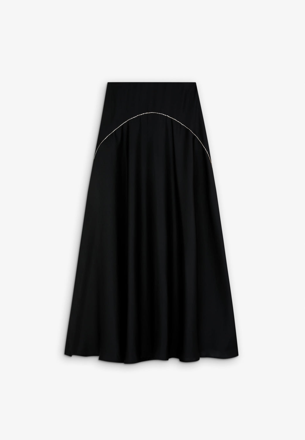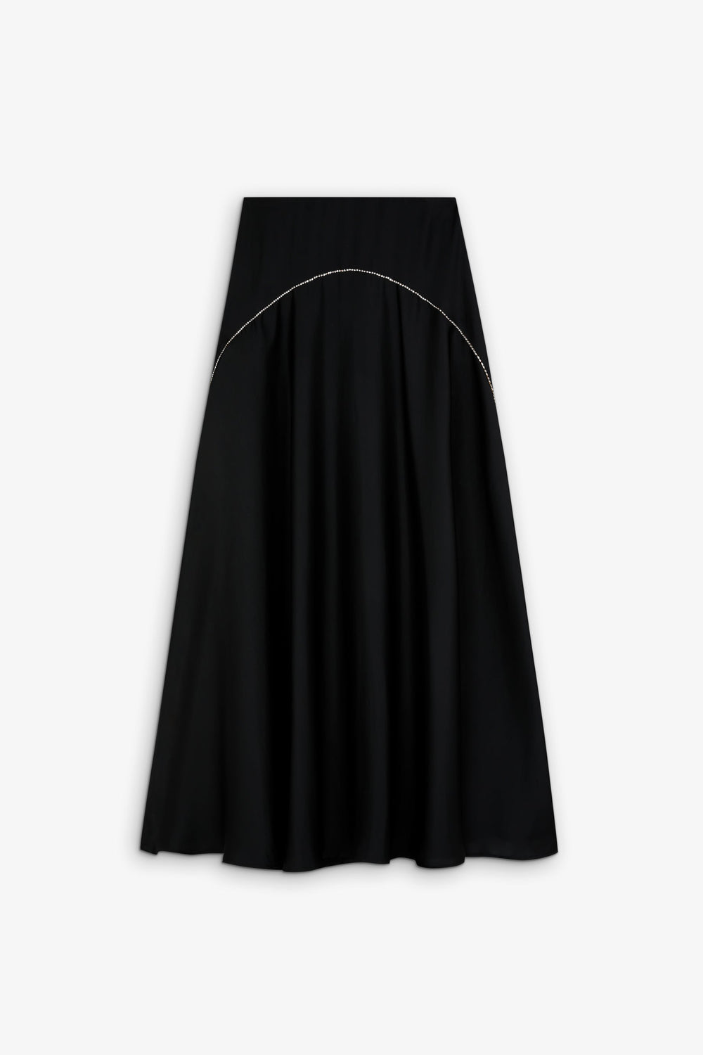 Minissaia confecionada em tecido acetinado. Regular fit, fecho de correr lateral e pormenor de vidros.