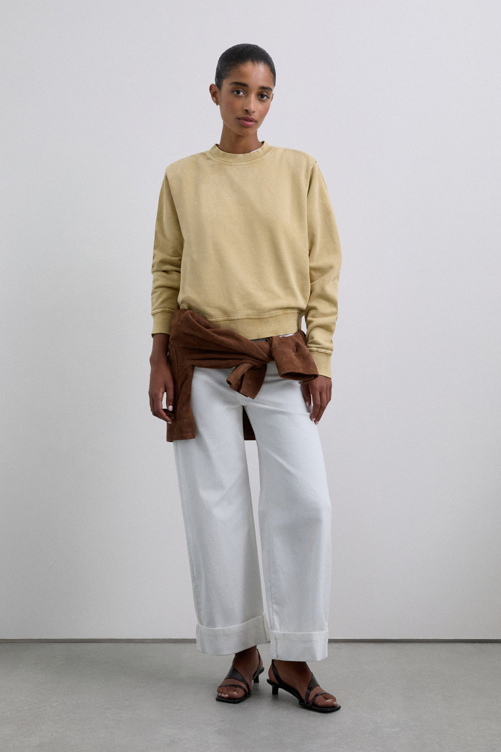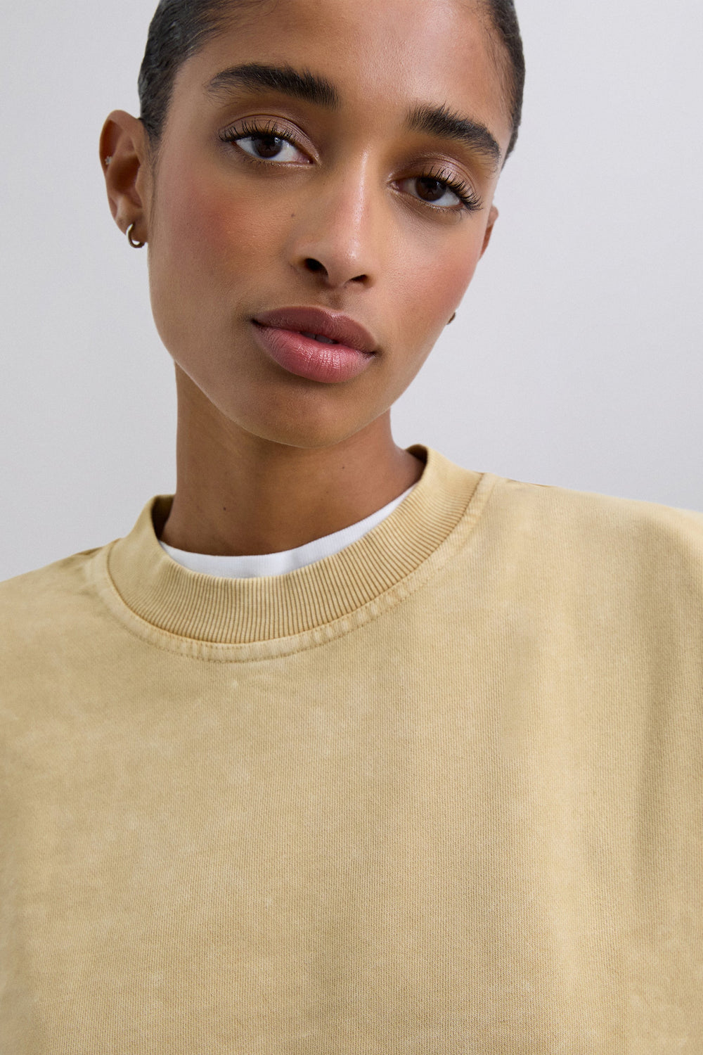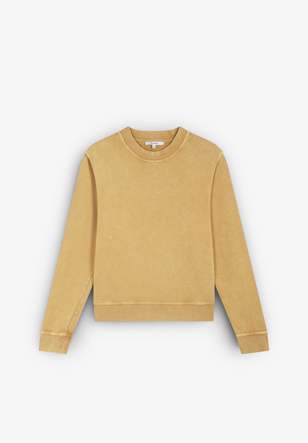 Sweatshirt confecionada em 100% Algodão Orgânico BCI. Manga comprida. Decote redondo. Nervuras nos punhos e na gola. Pormenor de skull com strass atrás.