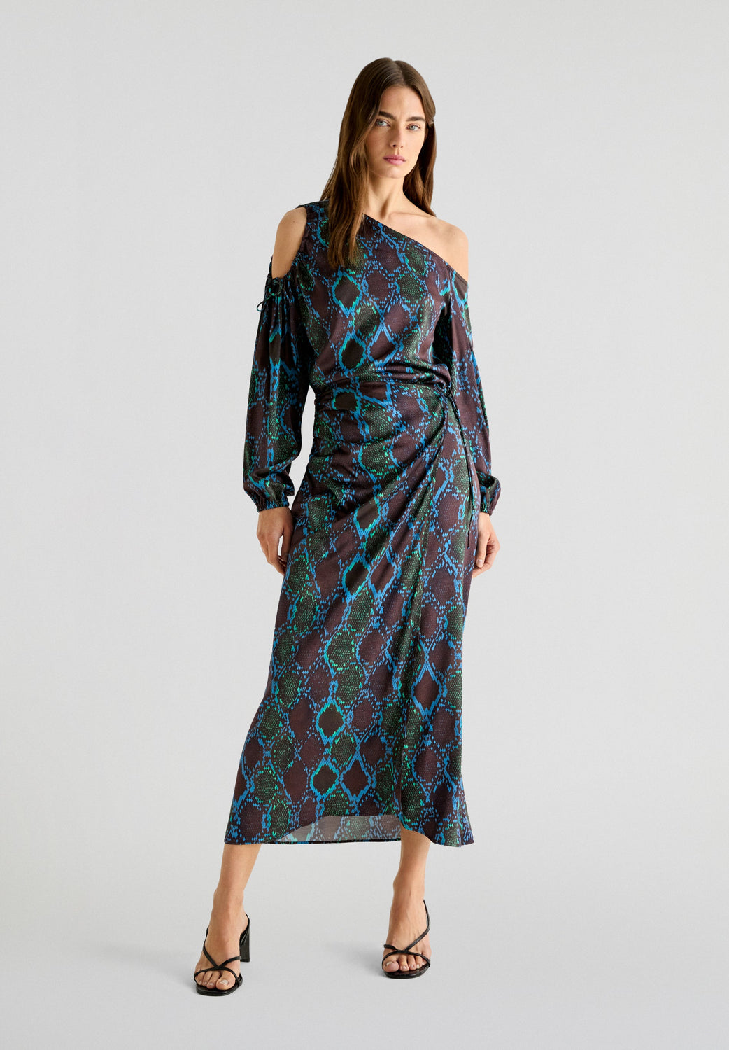 Saia midi estilo páreo com estampado de animal confecionada em tecido ligeiramente elástico. Regular Fit, fecho com fecho de correr e laço lateral.