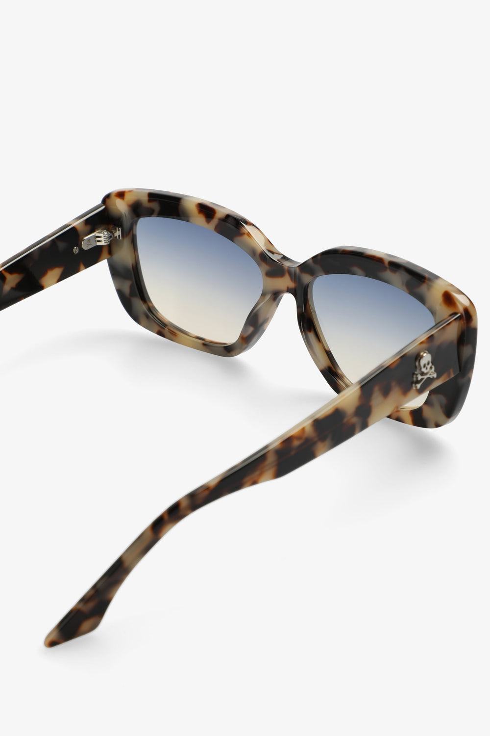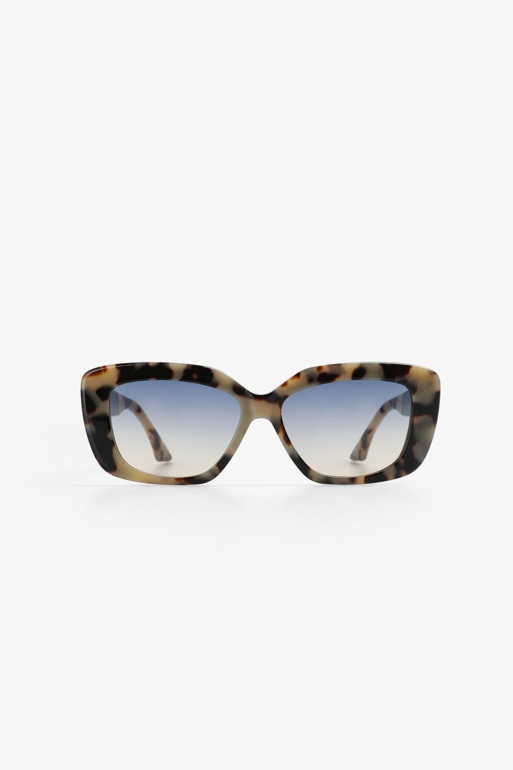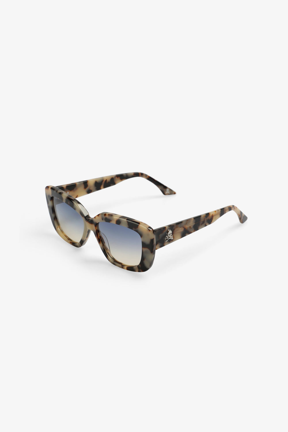 Óculos com armação de massa e acabamento efeito tartaruga. Lentes com filtro de proteção UV. Com uma capa de proteção. Pormenor de logótipo nas hastes.
