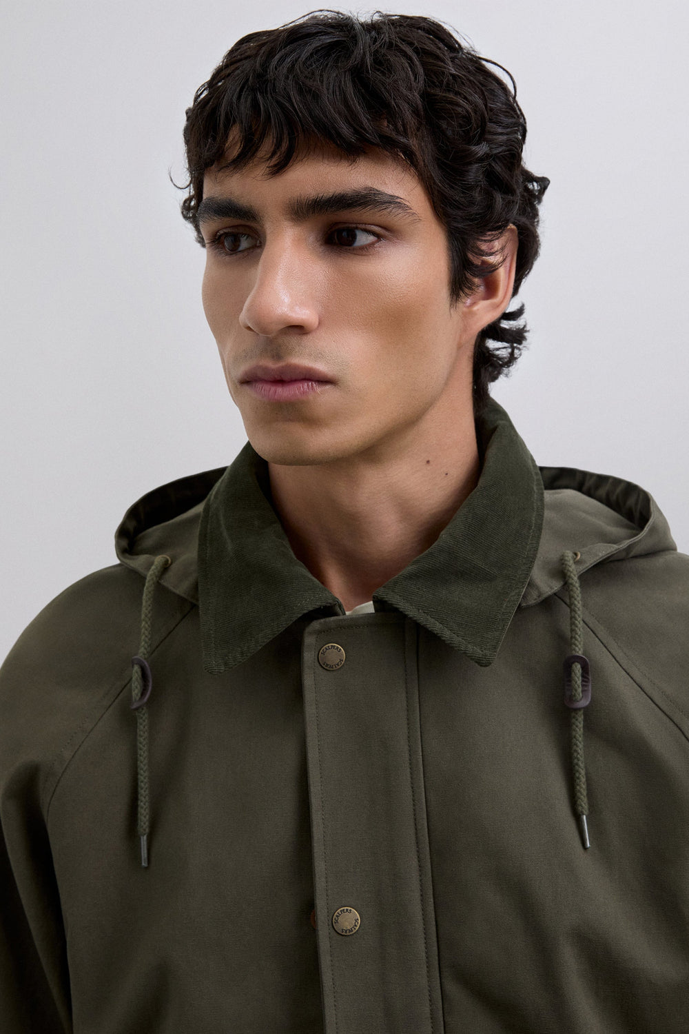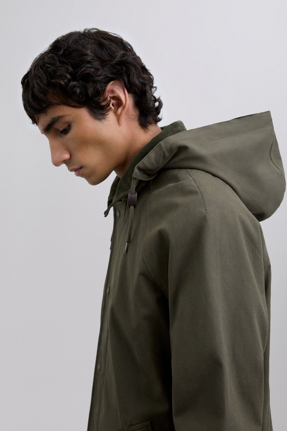 Cardigan confecionado em 100% Algodão BCI. Capuz ajustável e removível. Fecho de correr e botões. Punhos interiores de canelado. As linhas vivas da manga e o decote estão confecionados em bombazina. Mangas raglã. Dois bolsos à frente. Pormenores de logótipo no fecho de correr.