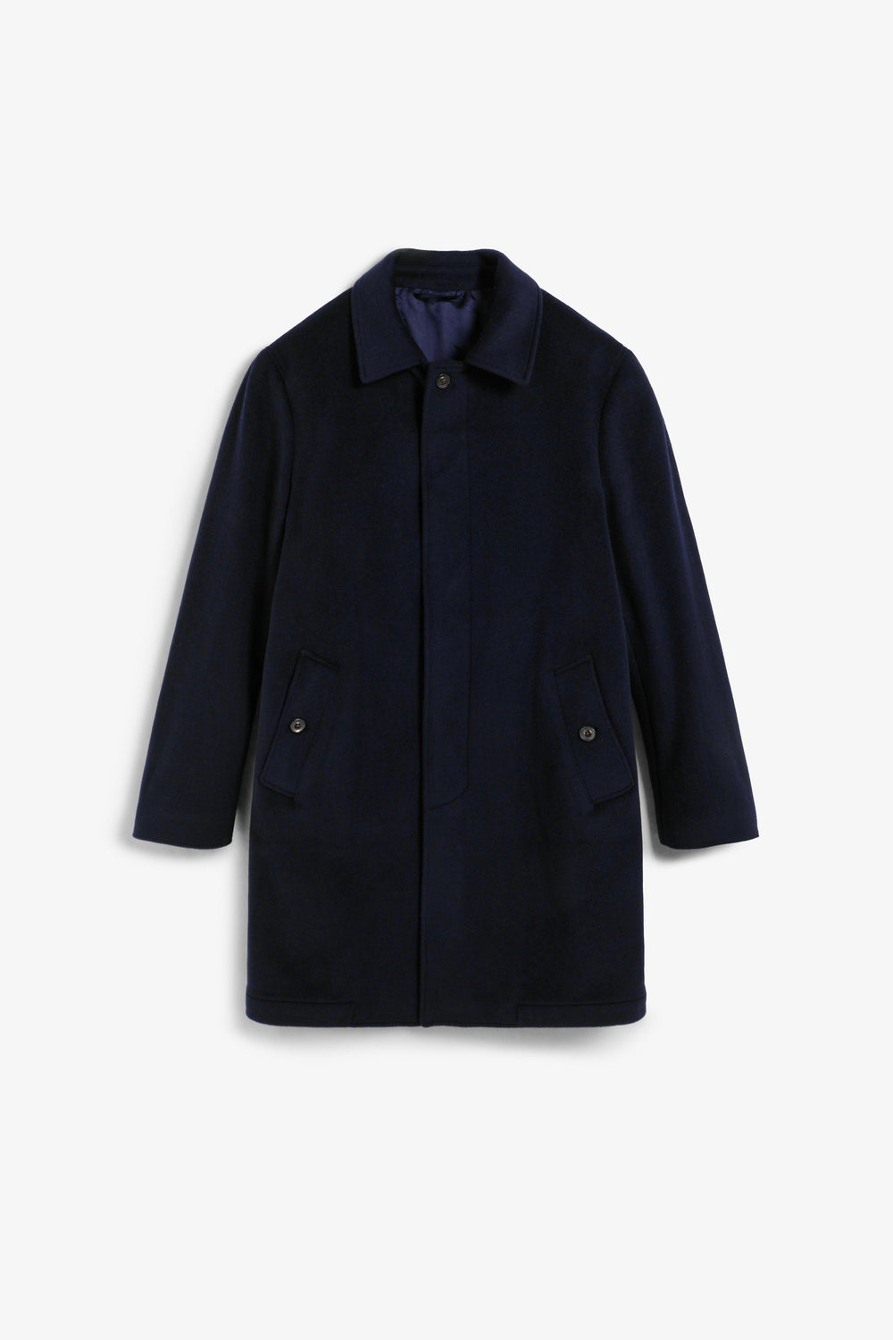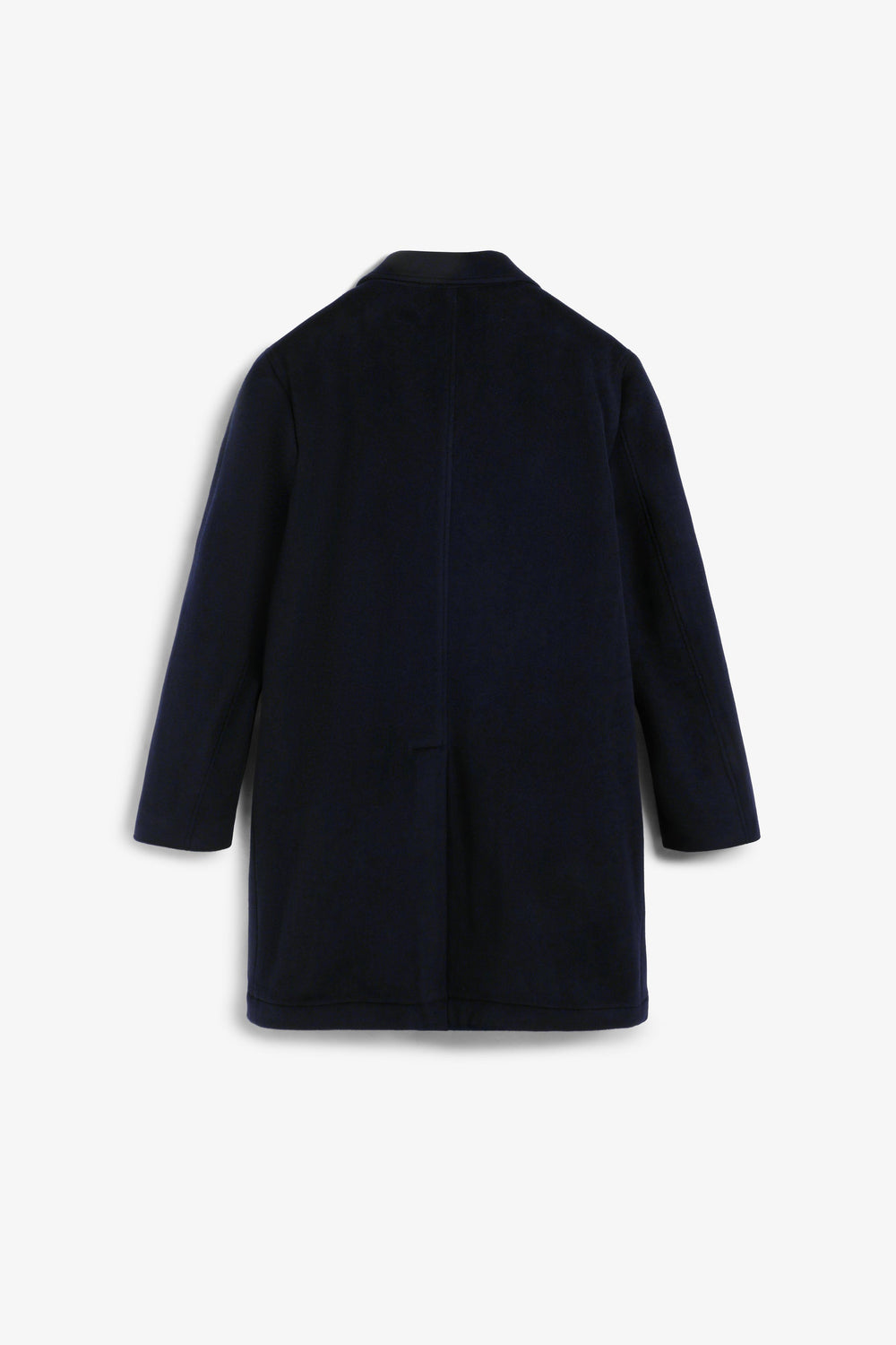 Casaco confecionado em tecido mistura de lã da casa italiana IN.TES.PRA. Colarinho de camisa. Manga comprida. Fecho com abotoadura frontal oculta. Dois bolsos laterais.