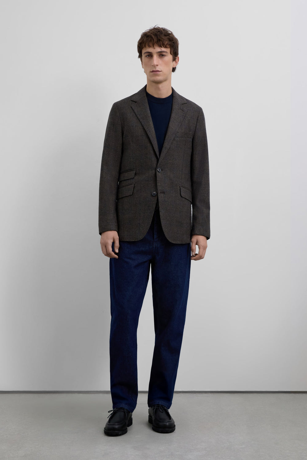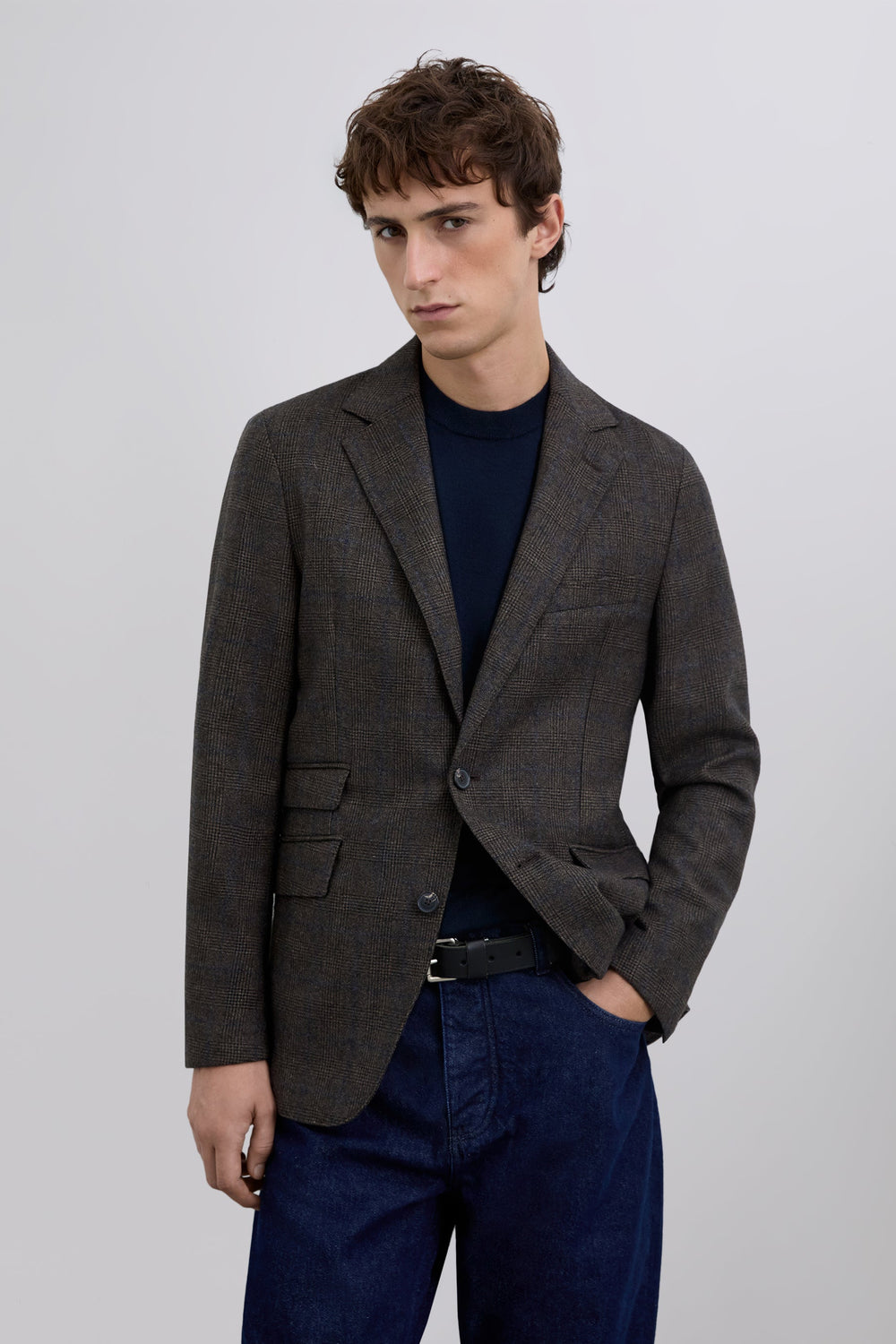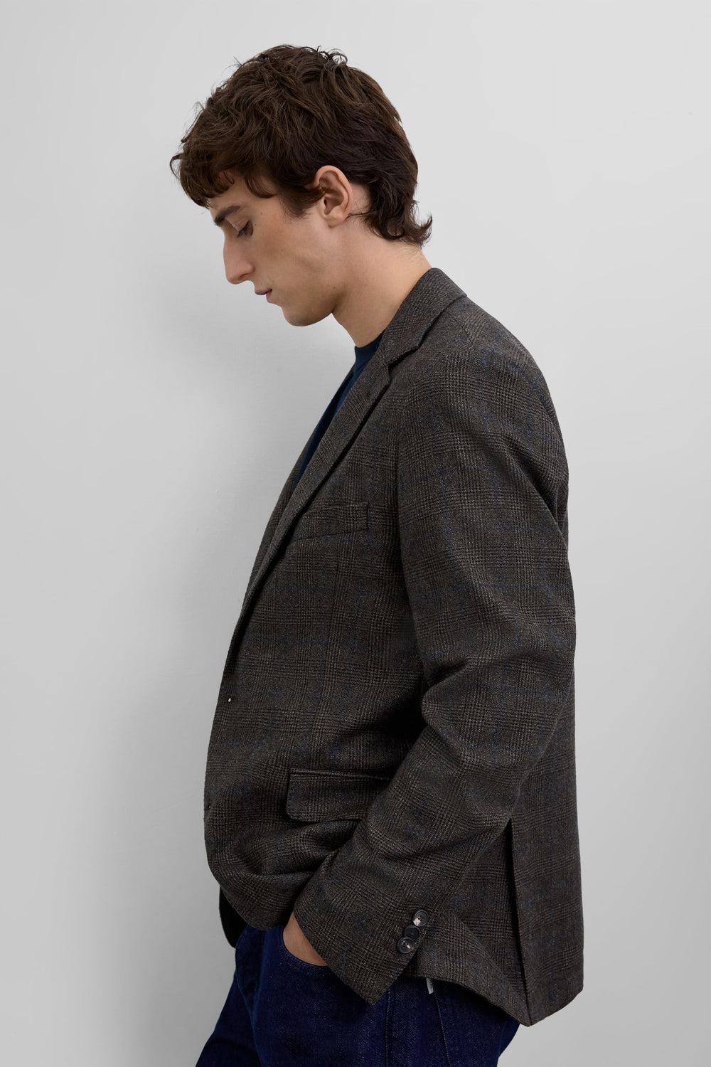 Blazer confecionado em 100% lã. Regular fit. Padrão em xadrez. Gola com lapela entalhada Fecho com botões. Bolsos com aba e bolso para caixa de fósforos. Manga comprida acabada em punho com botões praticáveis.