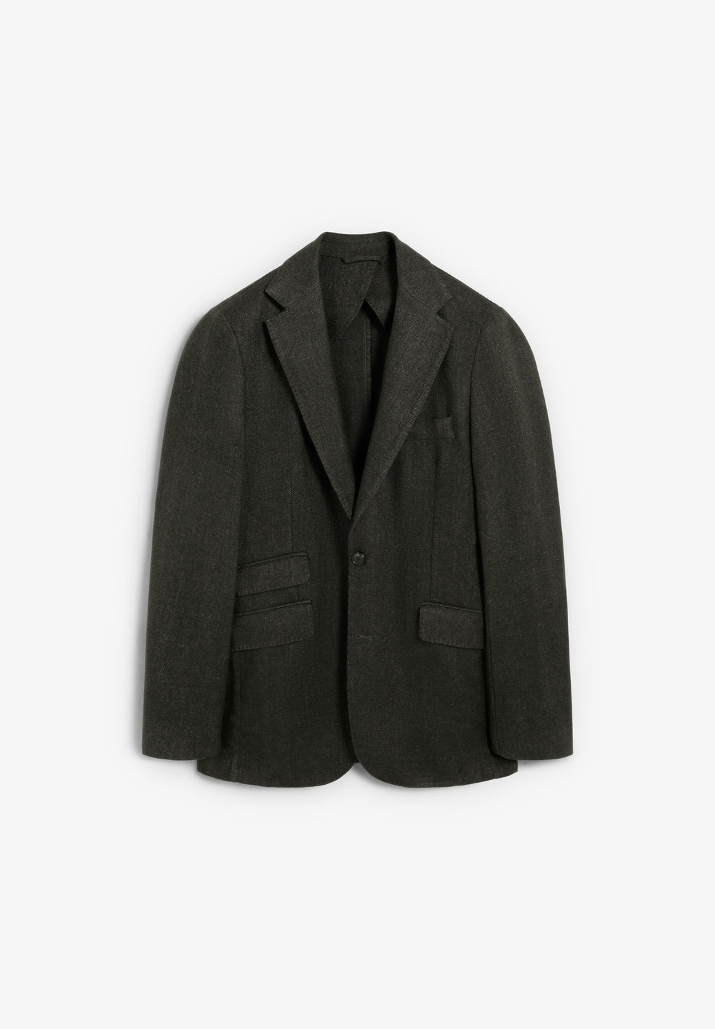 Blazer confecionado em lã. Design em espiga. Três bolsos com aba. Fecho de duplo botão. Bolso no peito com debrum. Manga comprida.