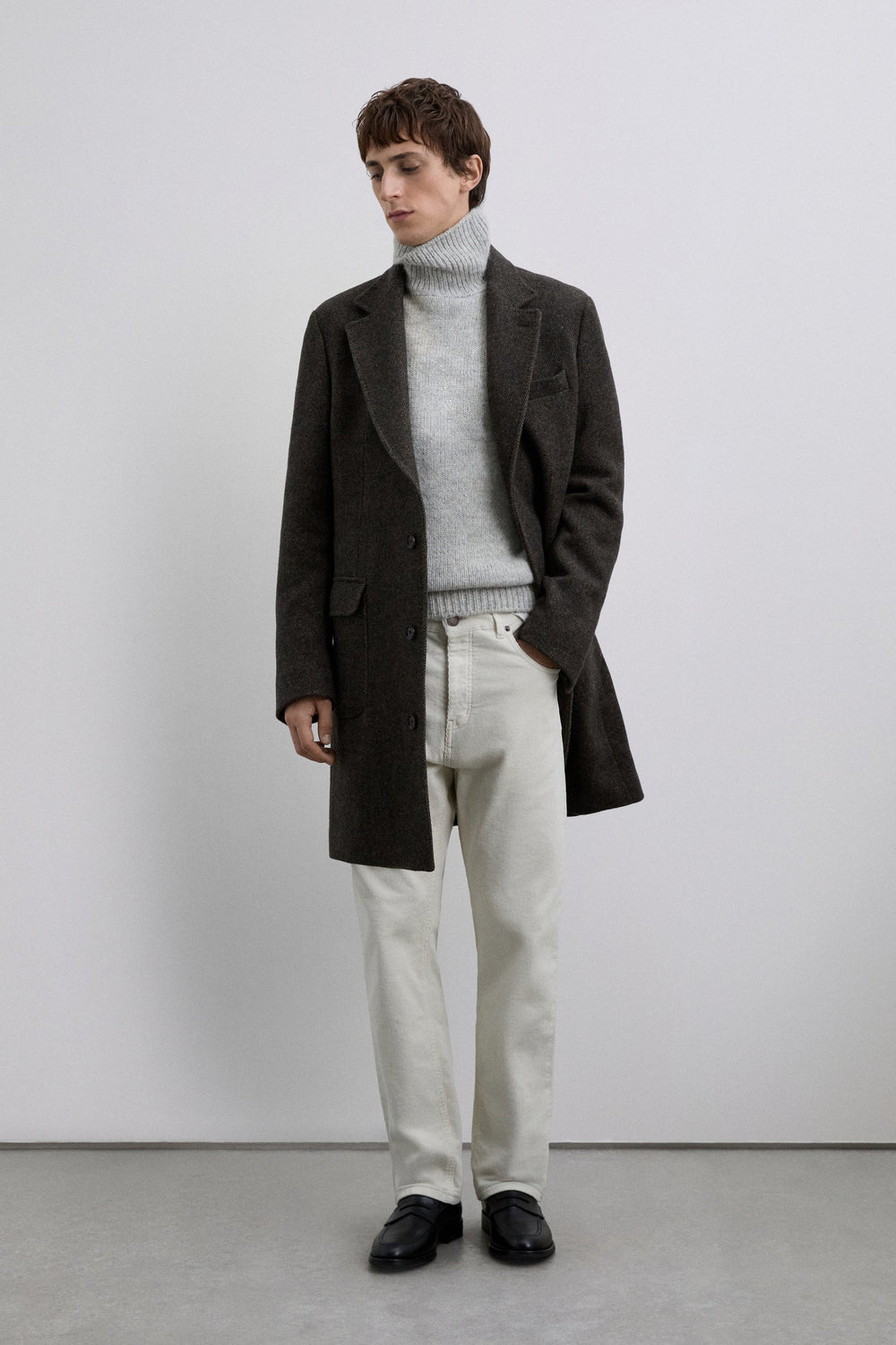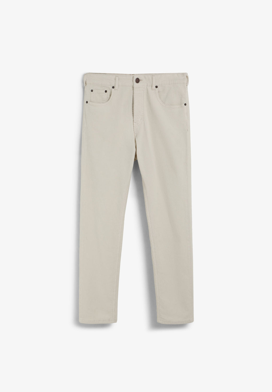 Calças de bombazina confecionadas em algodão. Cropped fit. Fecho de correr e abotoadura frontal. Bolsos laterais e traseiros. Presilhas na cintura. Pormenor de logótipo na cintura, na paprte de trás.