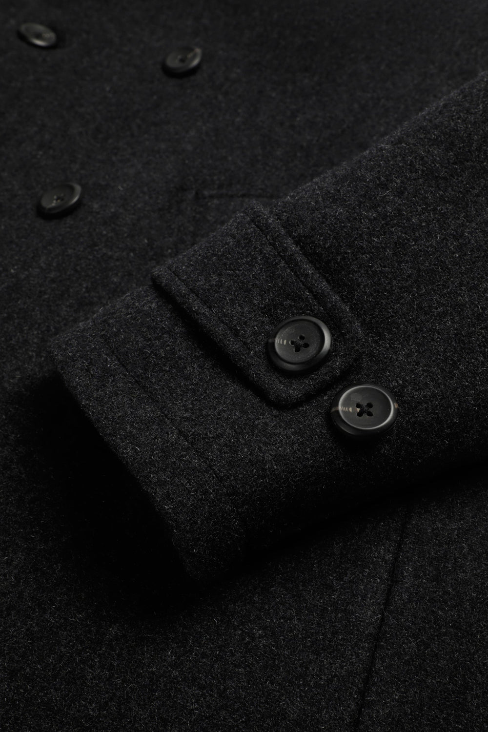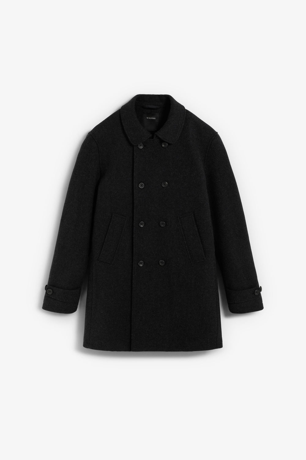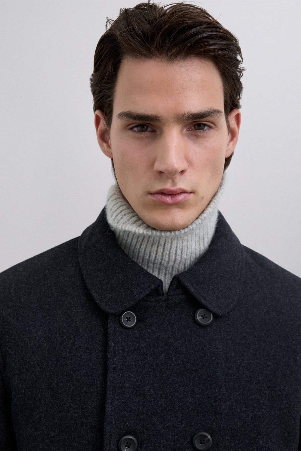 Casaco cruzado confecionado em mistura de lã. Abotoadura à frente. Bolsos de linhas vivas inclinados à frente. Bolso interior. Pormenor do punho com presilhas.