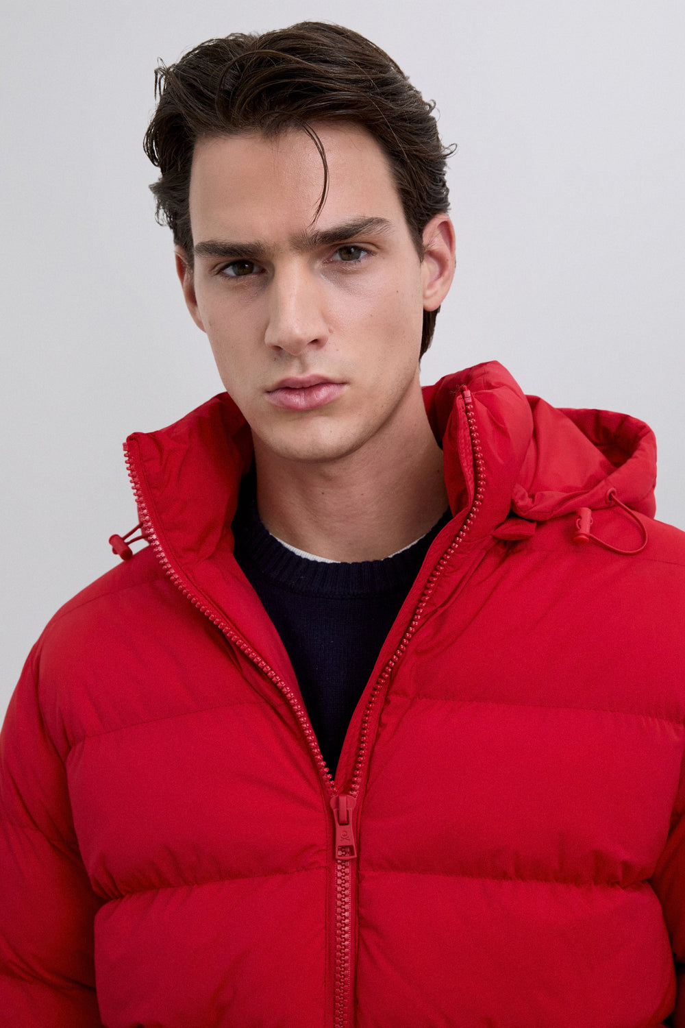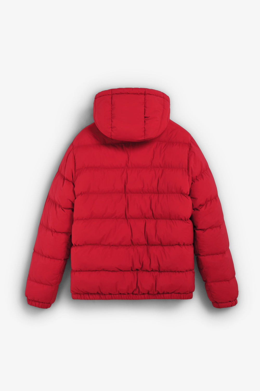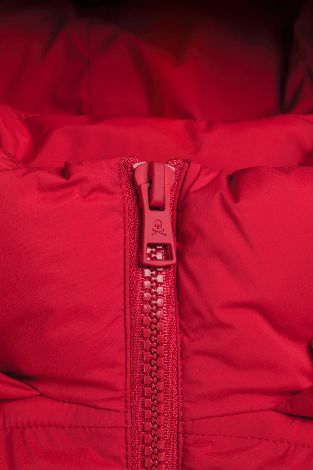 Blusão acolchoado com pormenor de skull no braço. Dois bolsos à frente. Fecho frontal com fecho de correr e puxador personalizado. Presilhas personalizadas no capuz. Ajustável nos punhos e bainha. Enchimento Thermolite. Capuz removível. Forro com pormenor acolchoado em textura diamante.