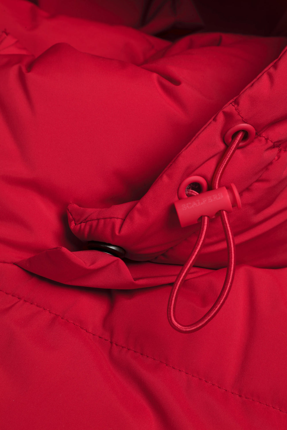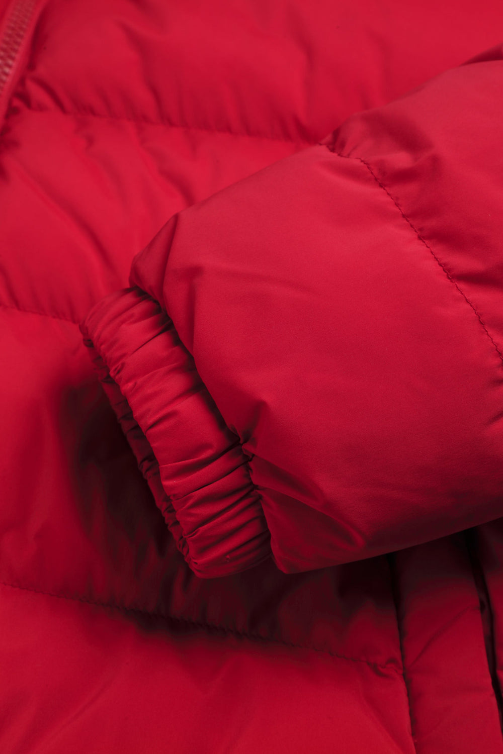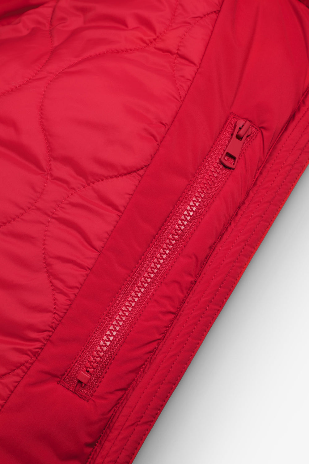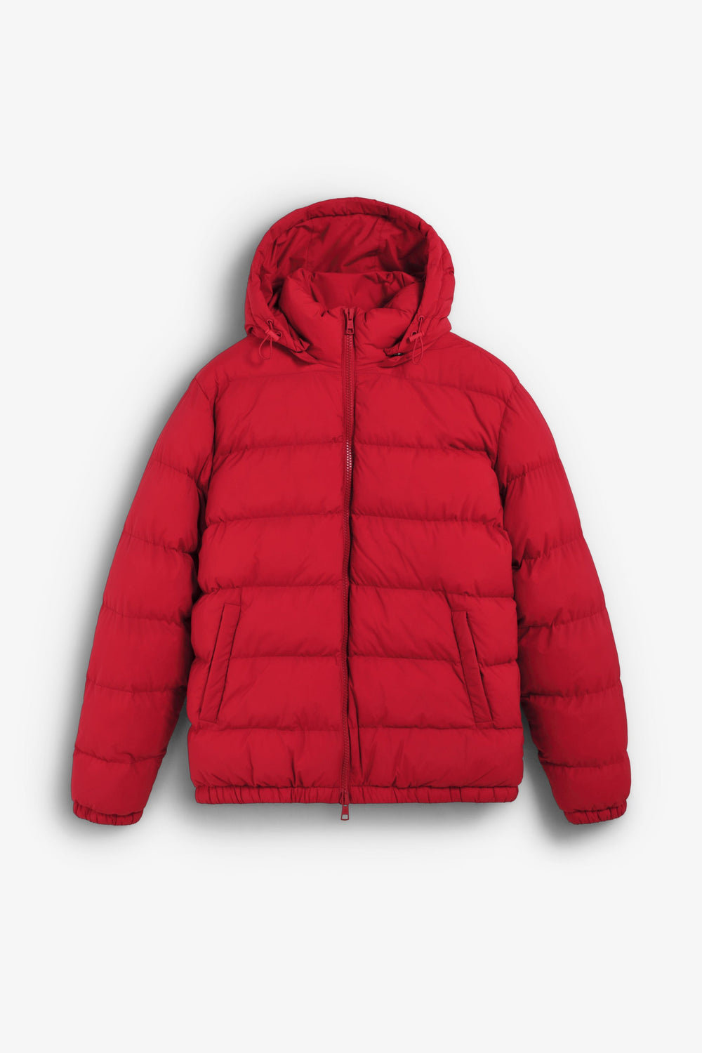 Blusão acolchoado com pormenor de skull no braço. Dois bolsos à frente. Fecho frontal com fecho de correr e puxador personalizado. Presilhas personalizadas no capuz. Ajustável nos punhos e bainha. Enchimento Thermolite. Capuz removível. Forro com pormenor acolchoado em textura diamante.