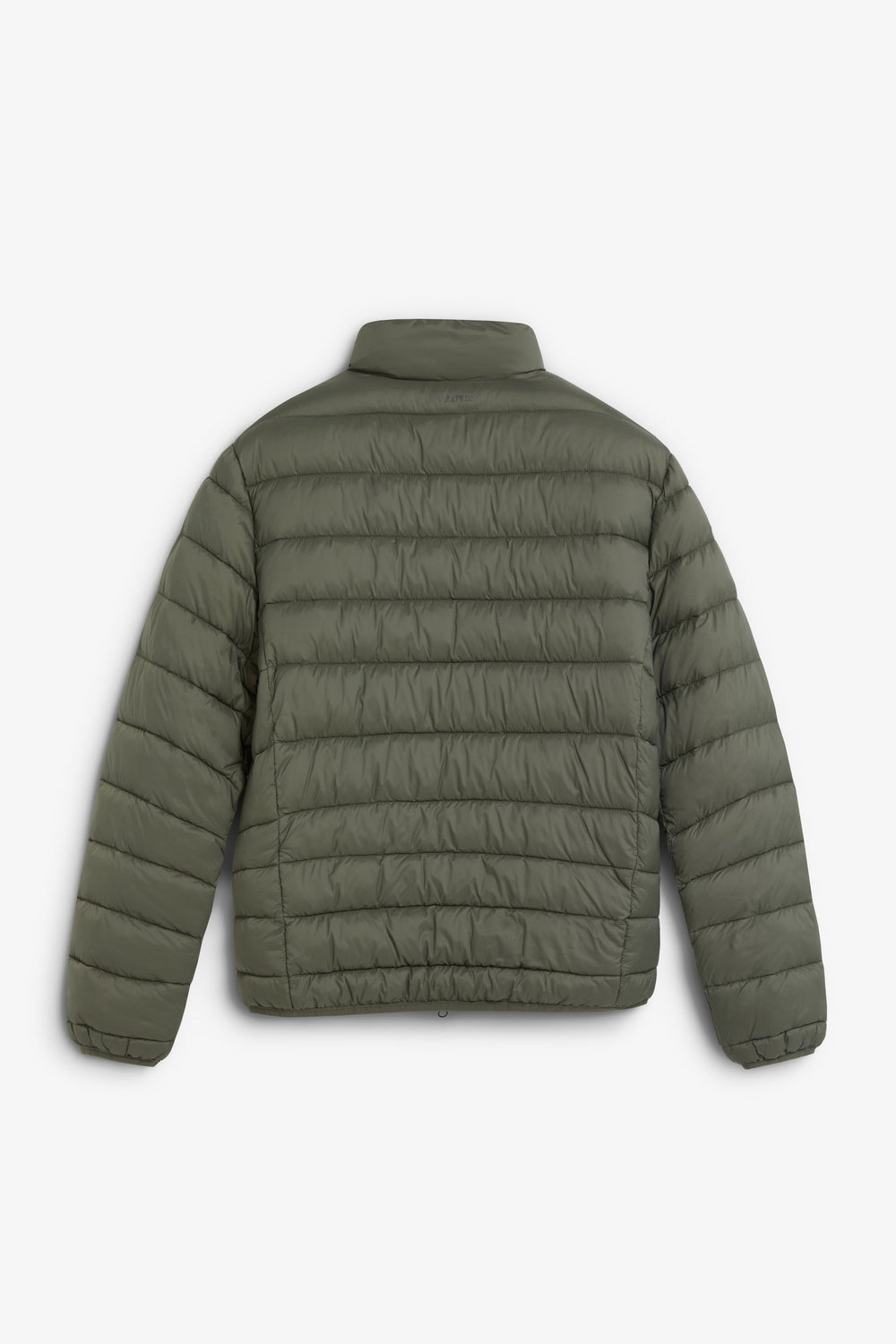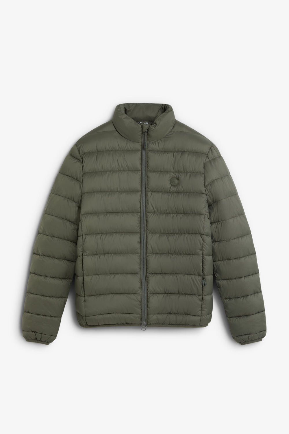Cardigan acolchoado. Repelente à água. Forro confecionado em tecido técnico. Bolsos laterais ocultos com forro polar. Fecho zip duplo gravado. Remendo efeito de caucho com logótipo no tom no peito.