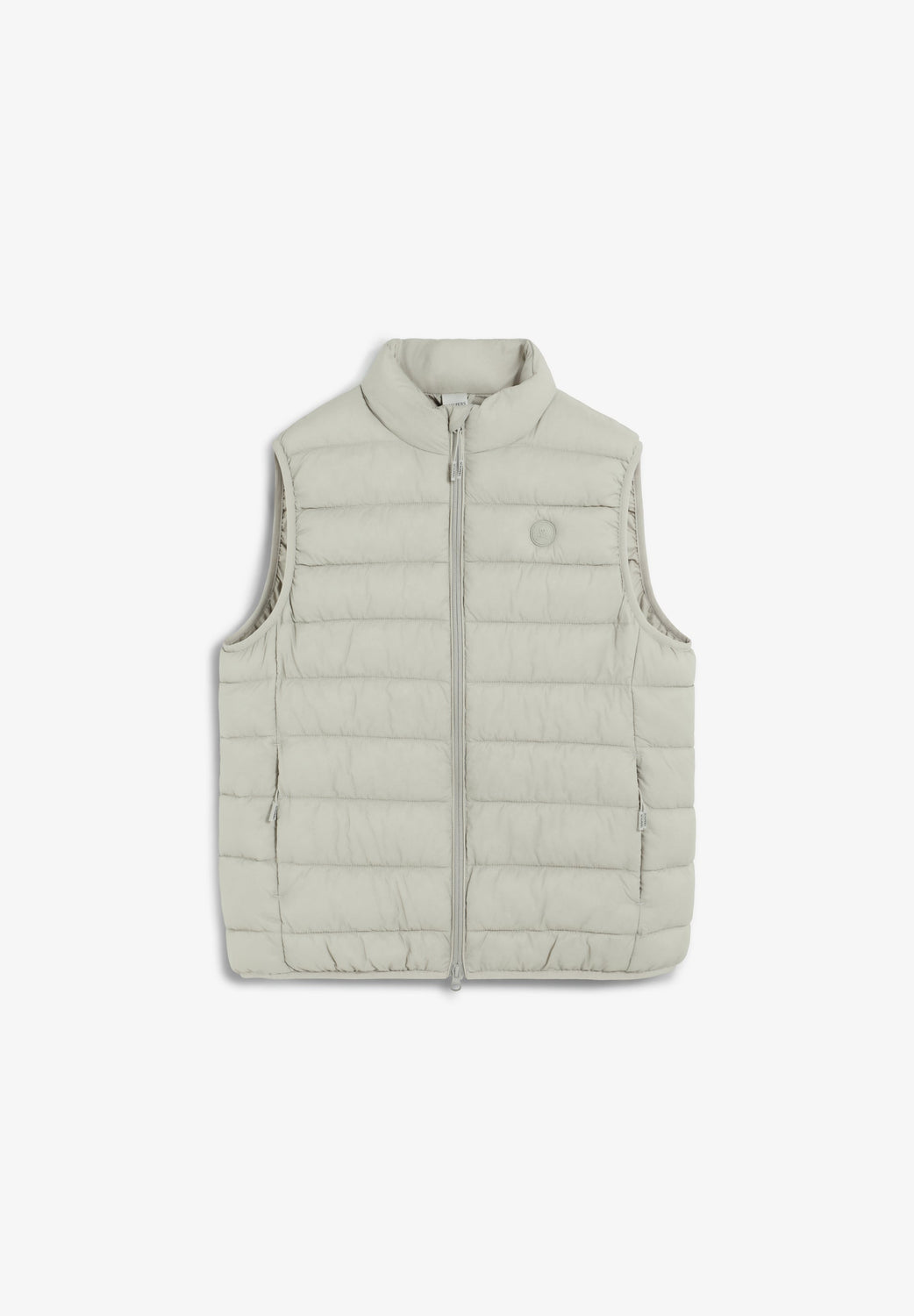 Colete acolchoado. Repelente à água. Forro confecionado em tecido técnico. Bolsos laterais ocultos com forro polar. Fecho zip duplo gravado. Remendo efeito de caucho com logótipo no tom no peito.