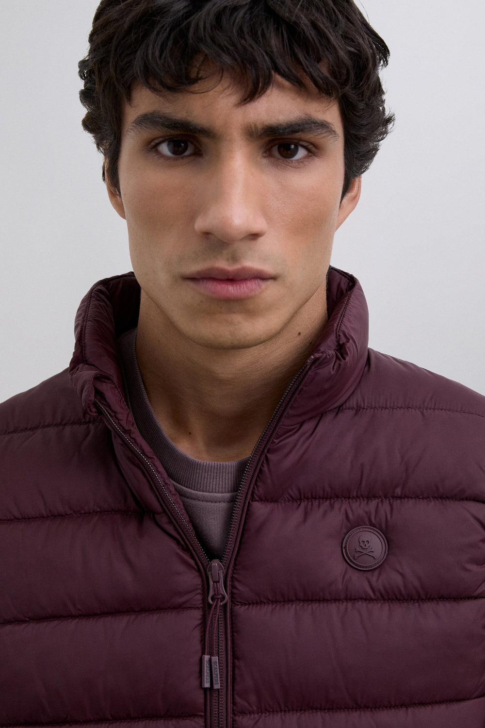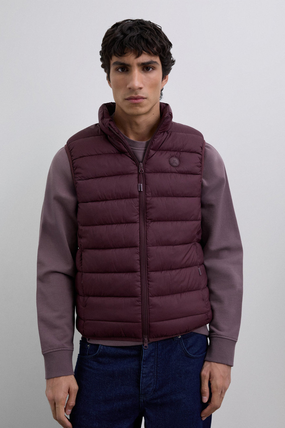 Colete acolchoado. Repelente à água. Forro confecionado em tecido técnico. Bolsos laterais ocultos com forro polar. Fecho zip duplo gravado. Remendo efeito de caucho com logótipo no tom no peito.