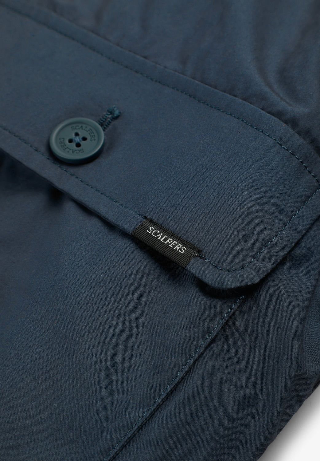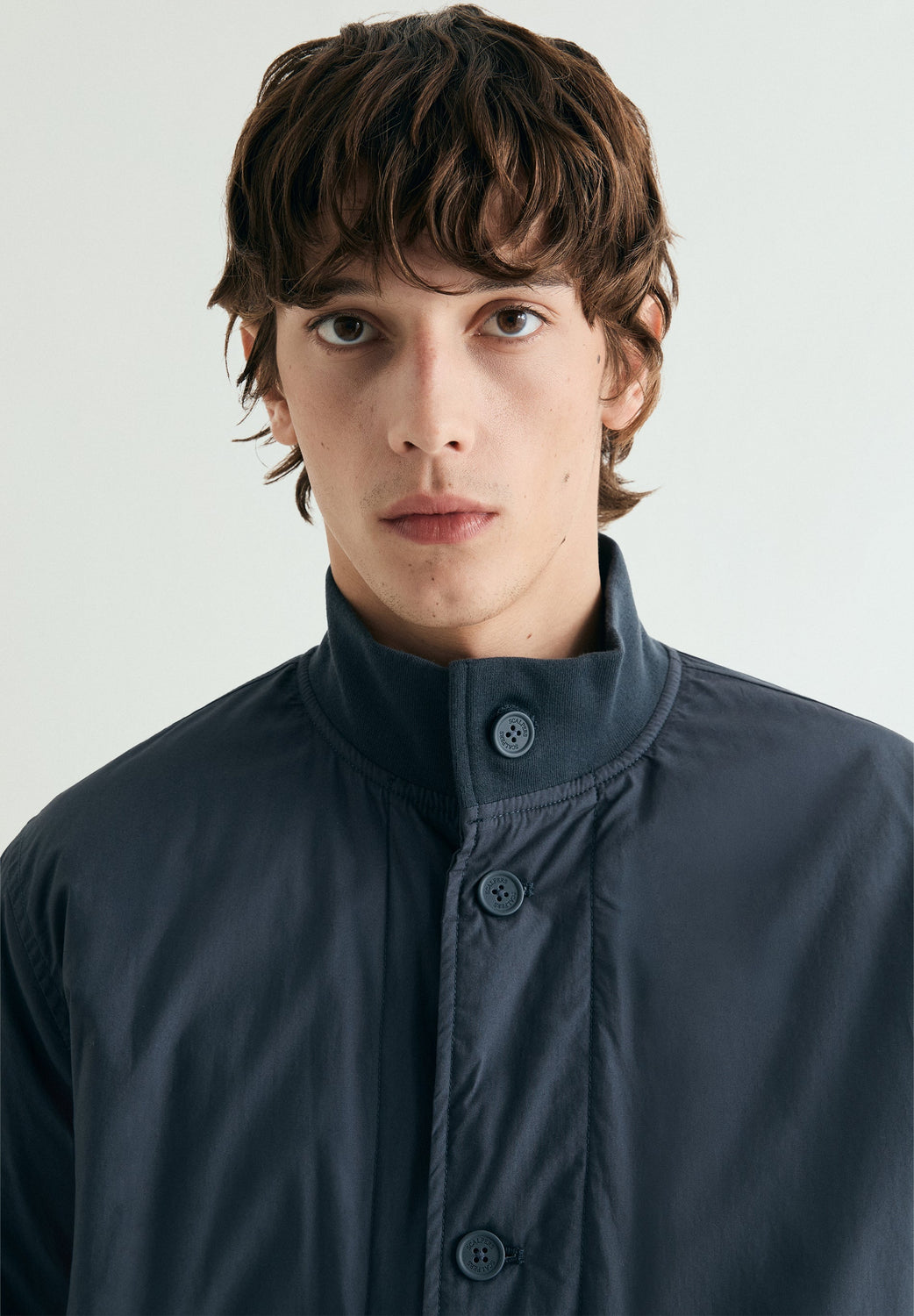 Casaco confecionado em 100% algodão BCI. Fecho com botões à frente. Bolsos frontais com fecho de botão. Acabamentos canelados. Pormenor de etiqueta no bolso esquerdo.