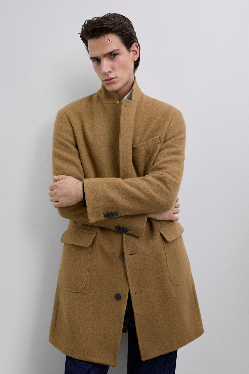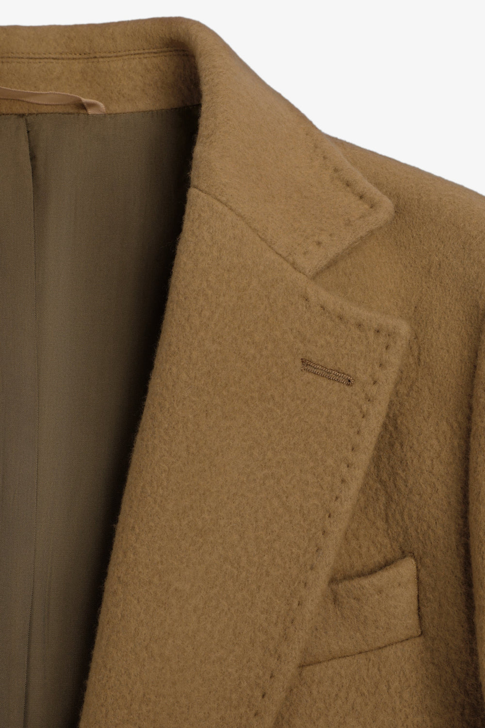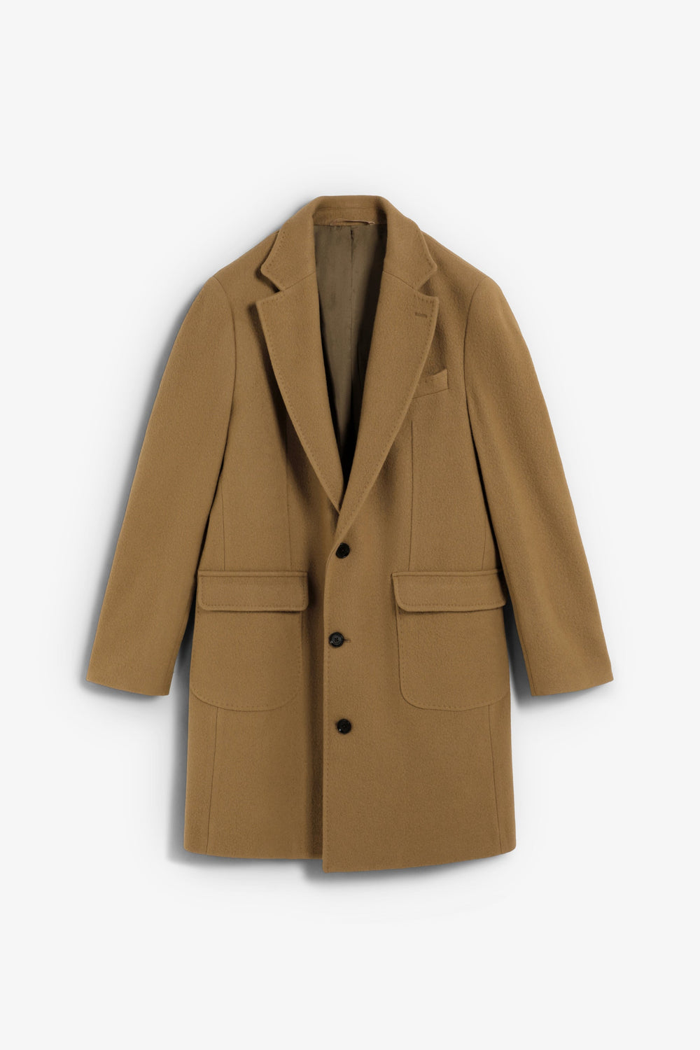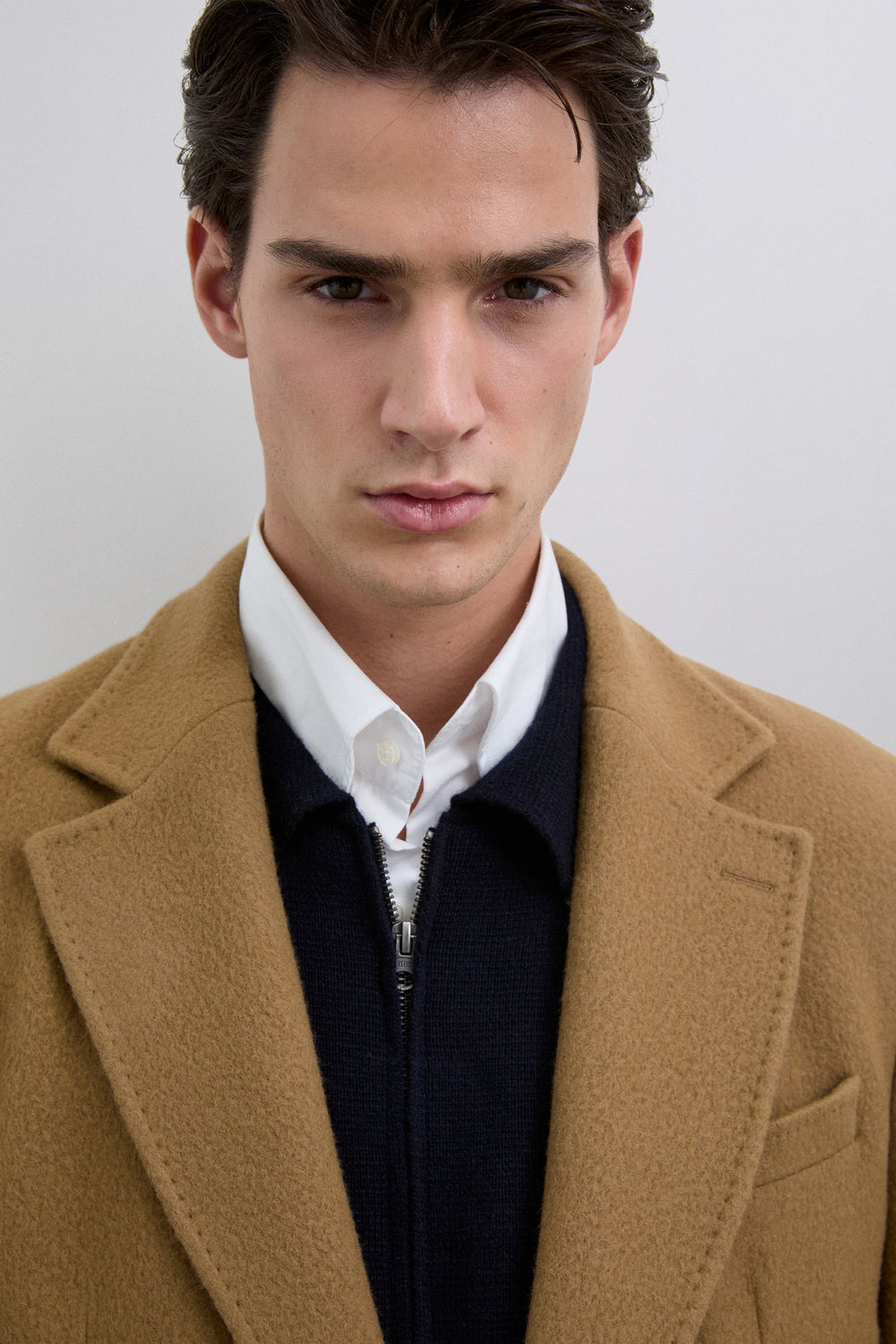 Casaco comprido confecionado em mistura de lã virgem de elevada qualidade. Gola lapela. Manga comprida com punho abotoado. Bolsos à frente com aba dupla. Fecho por abotoadura frontal. Abertura central traseira.