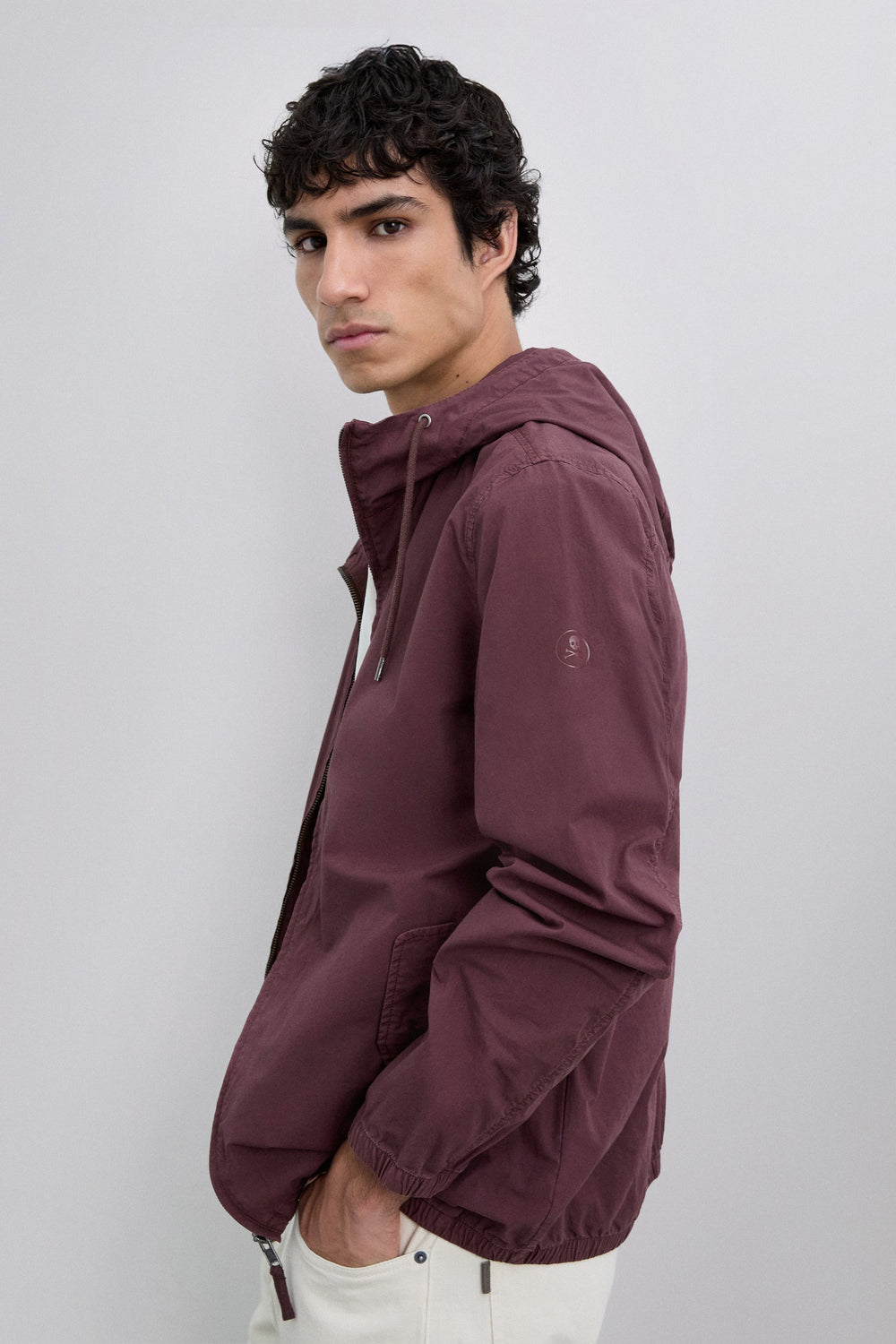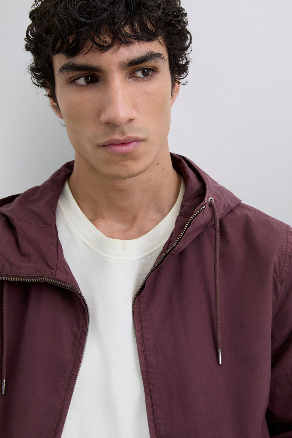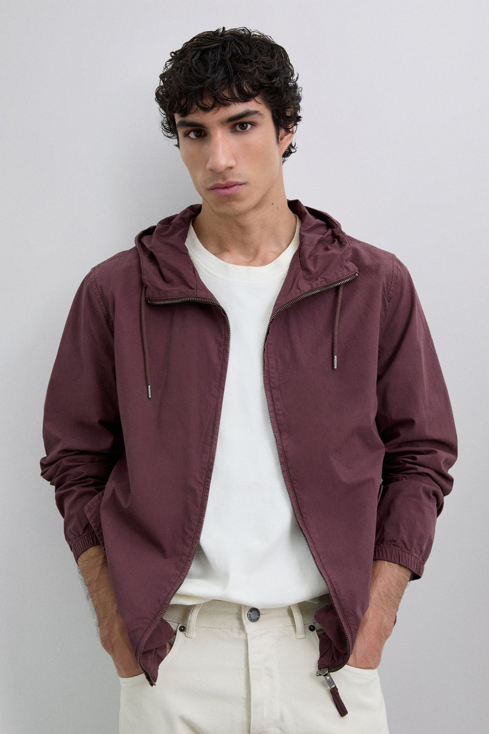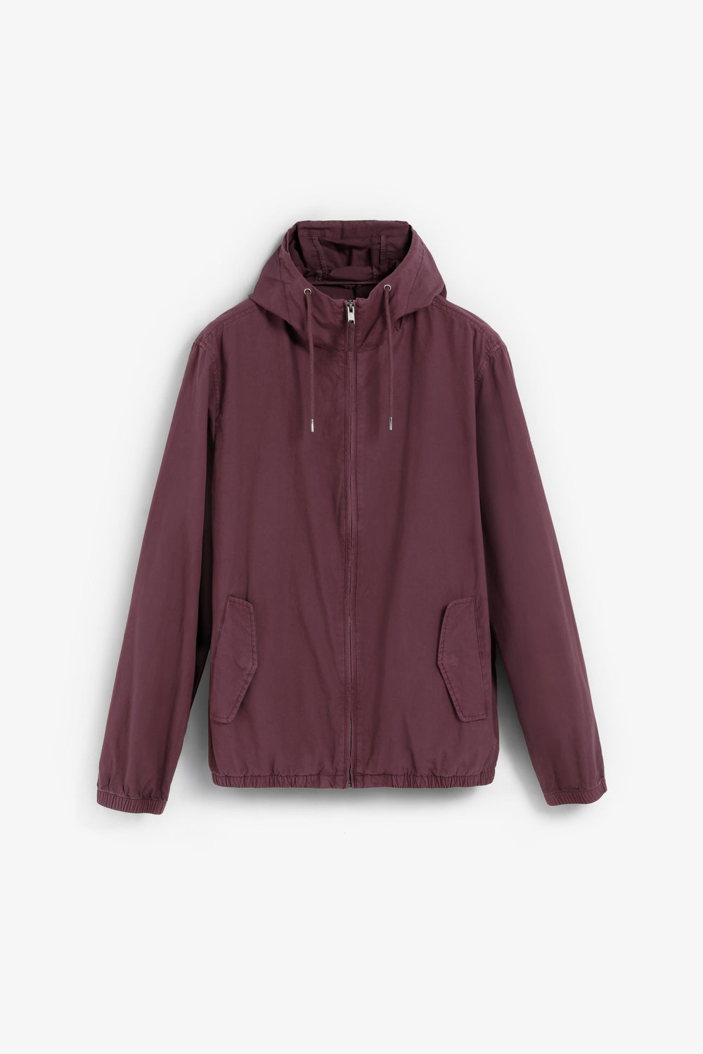 Casaco leve confecionado em 100% algodão BCI. Regular fit. Gola com capuz ajustável com cordão e fecho com fecho de correr. Manga comprida terminada em elástico. Bolsos à frente com aba. Forro.