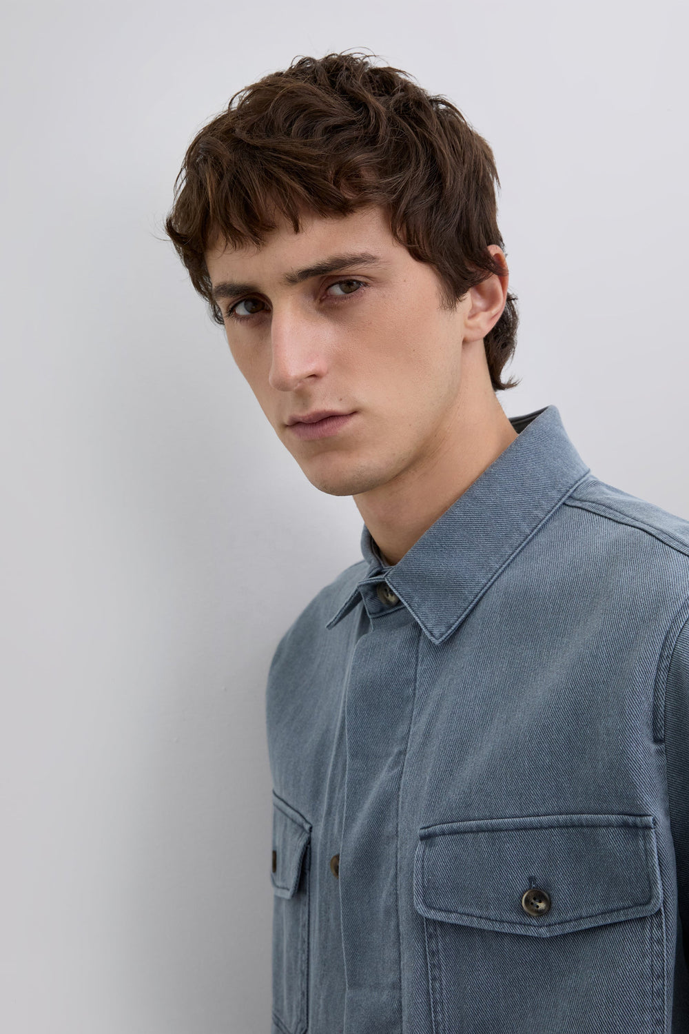 Blusão confecionado em algodão recycled. Efeito desbotado. Dois bolsos de aba no peito com fecho de botão. Fecho à frente com botões.