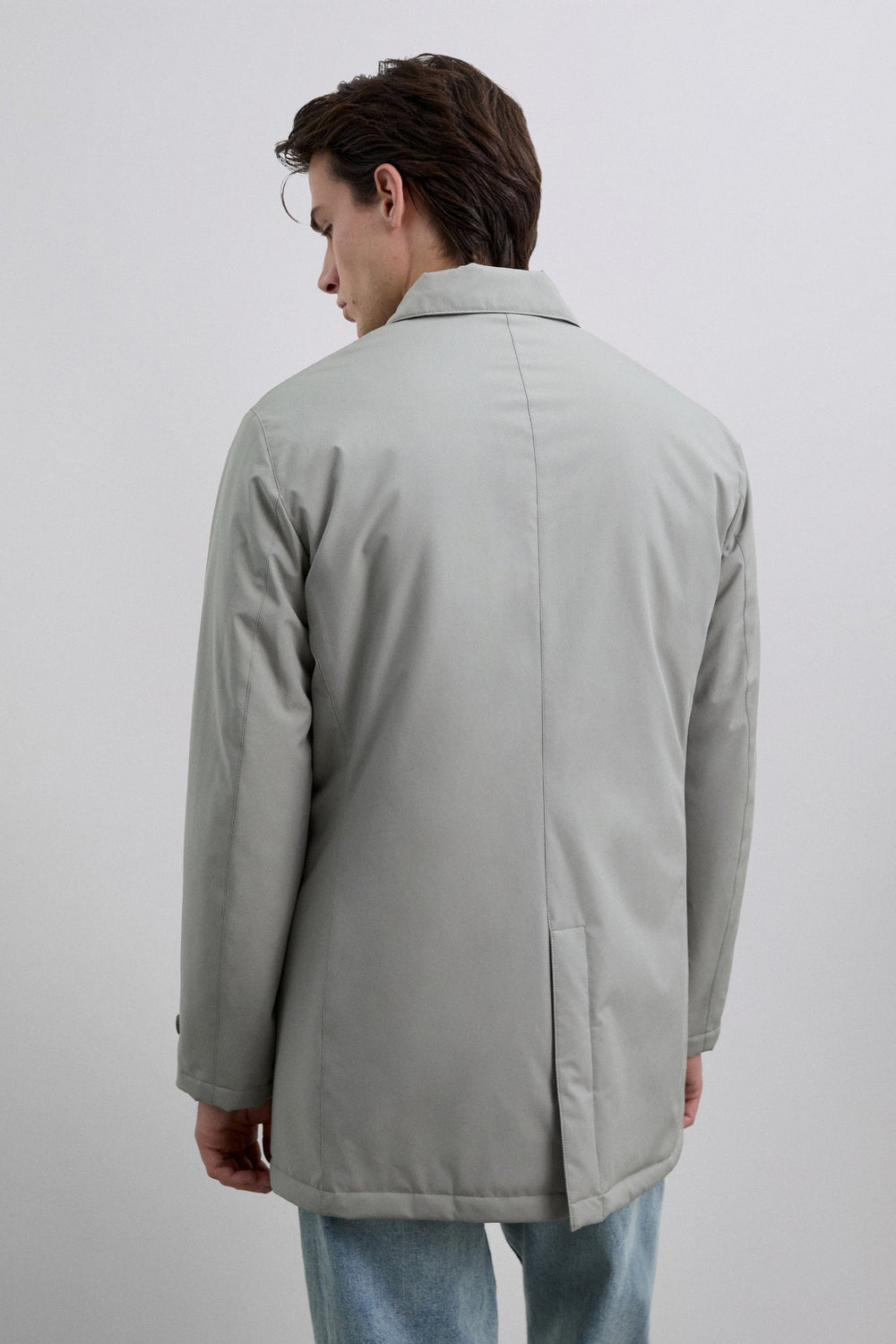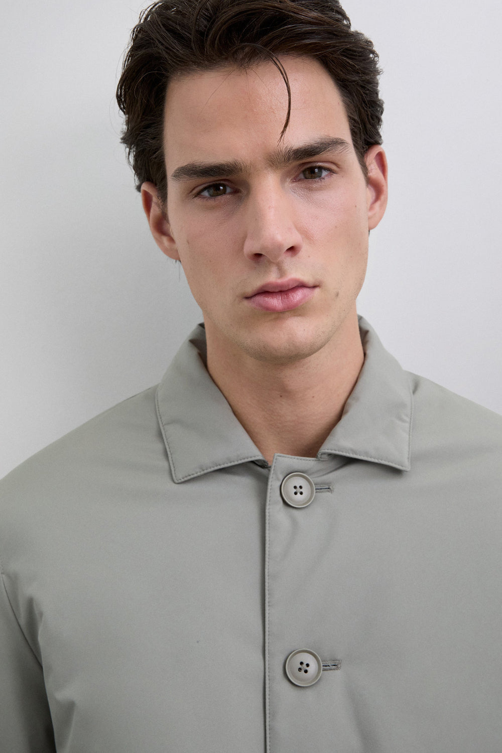 Gabardina com tecido repelente à água e resistente ao vento. Manga comprida com punho de tira com botão de pressão. Fecho com botões à frente. Bolsos laterais. Pormenor de logótipo gravado nos botões.
