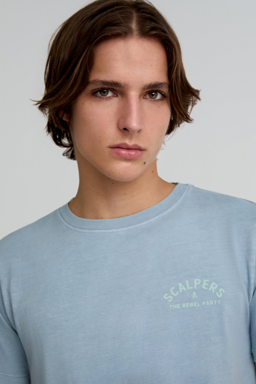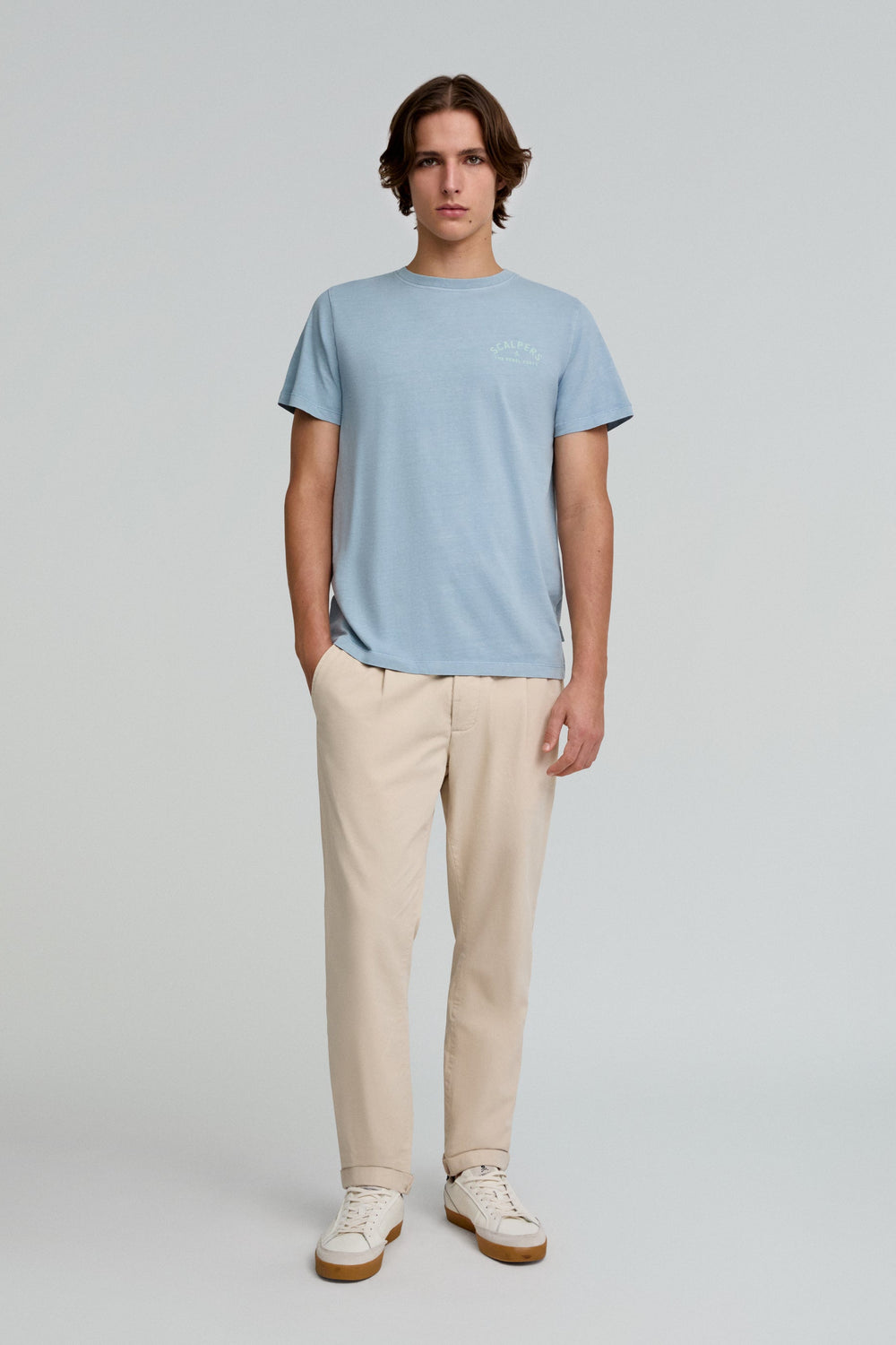 T-shirt desbotada BCI confecionada em 100% algodão BCI. Regular fit, decote redondo e manga curta. Pormenor de padrão atrás e no peito.