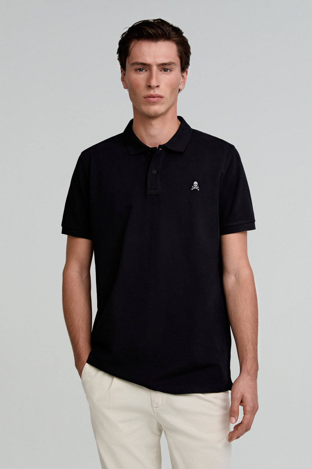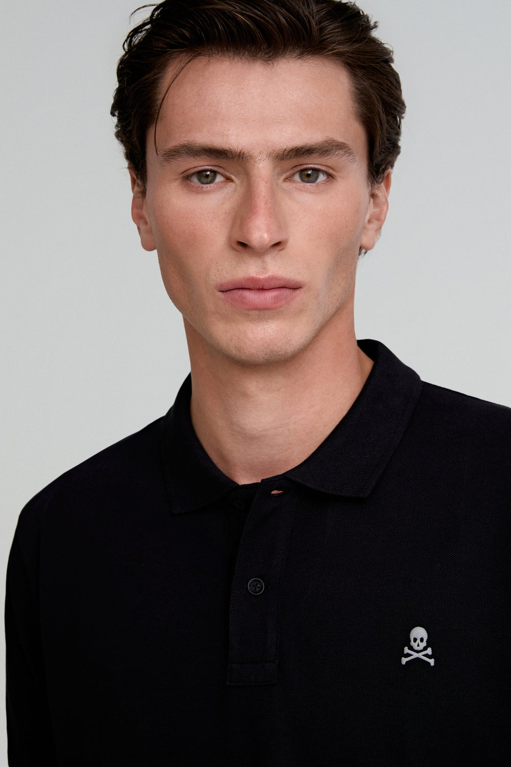 Camisa polo de confeção em 100% algodão BCI. Regular fit, colarinho clássico e skull em contraste.