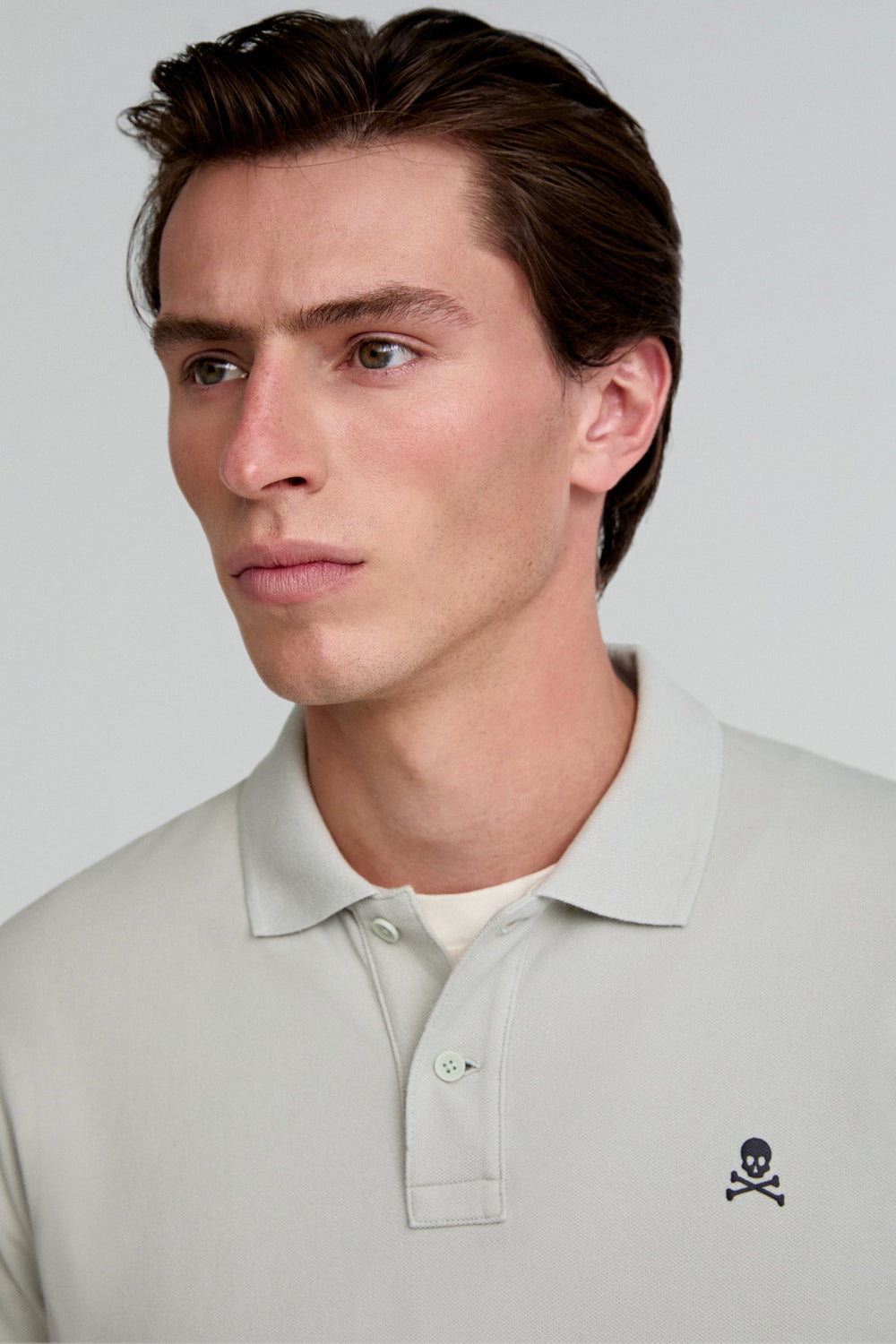 Camisa polo de confeção em 100% algodão BCI. Regular fit, colarinho clássico e skull em contraste.