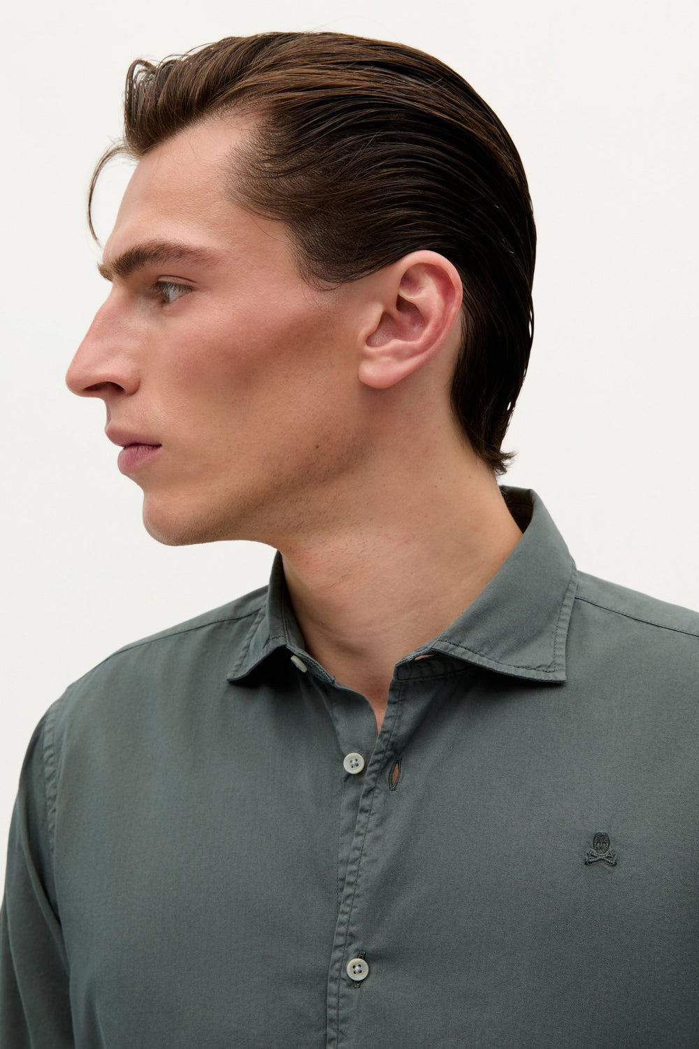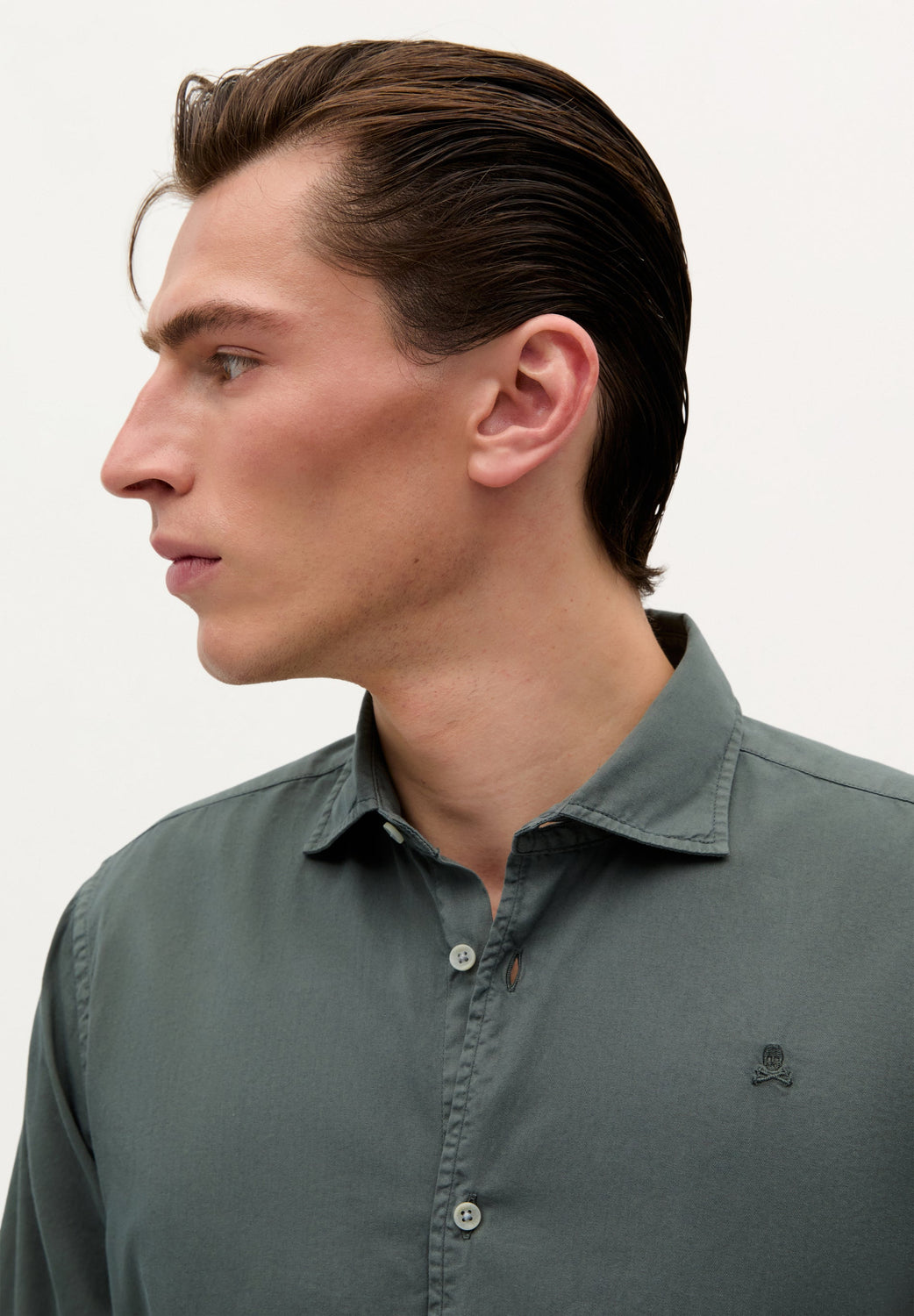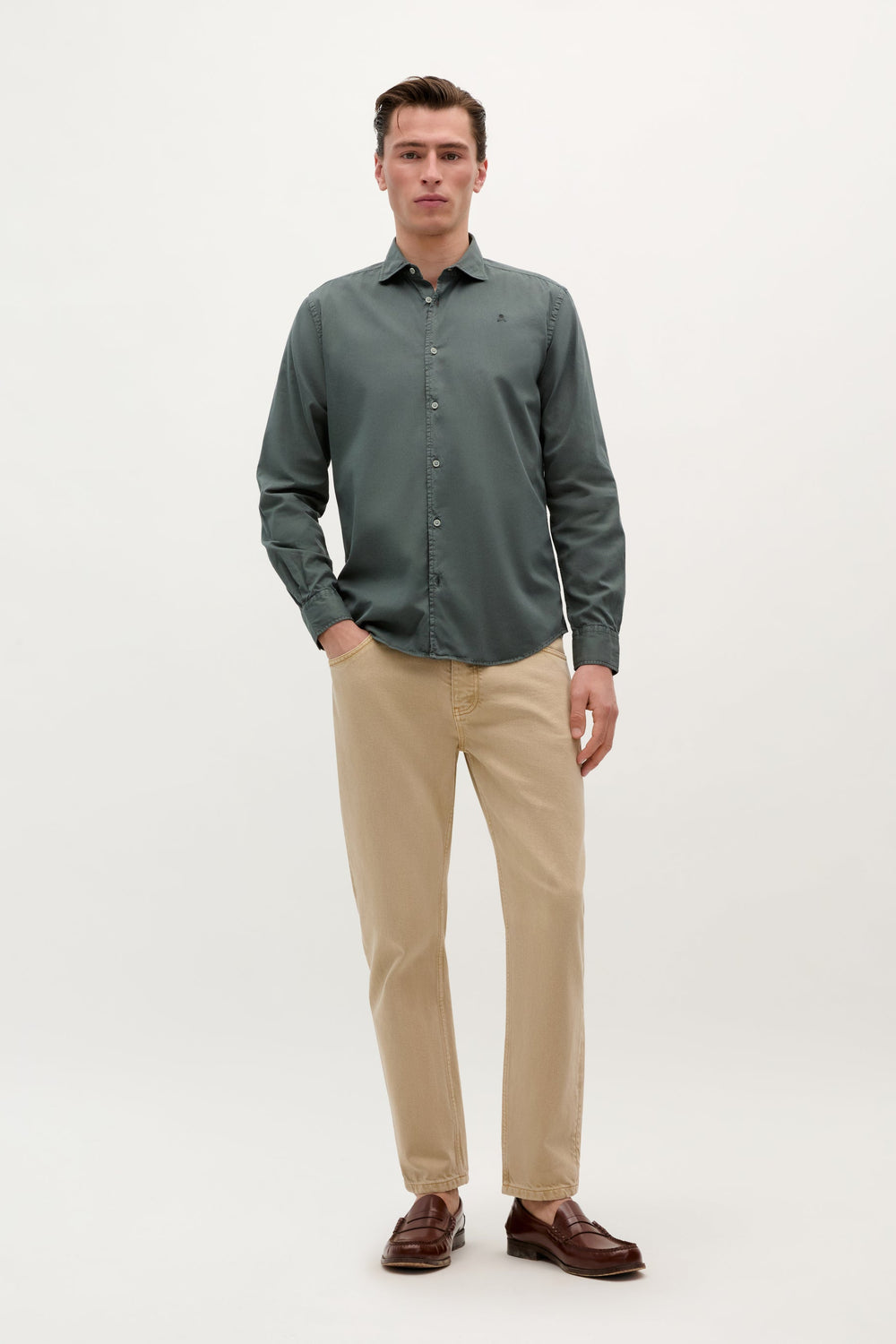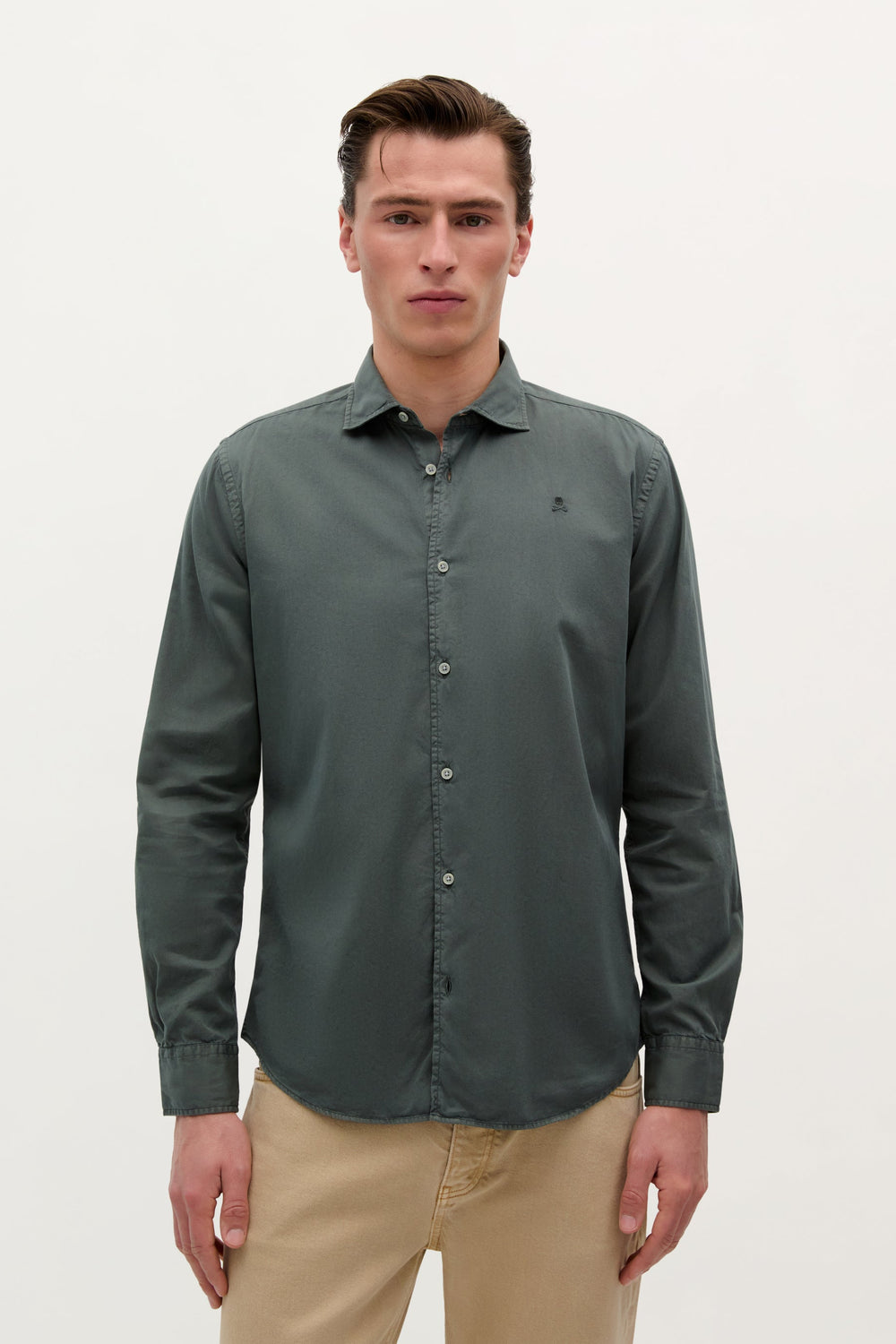 Camisa confecionada em tecido 100% algodão. Regular fit, colarinho clássico e fecho com botões. Manga comprida terminada em punho com botões e logótipo bordado no tom.