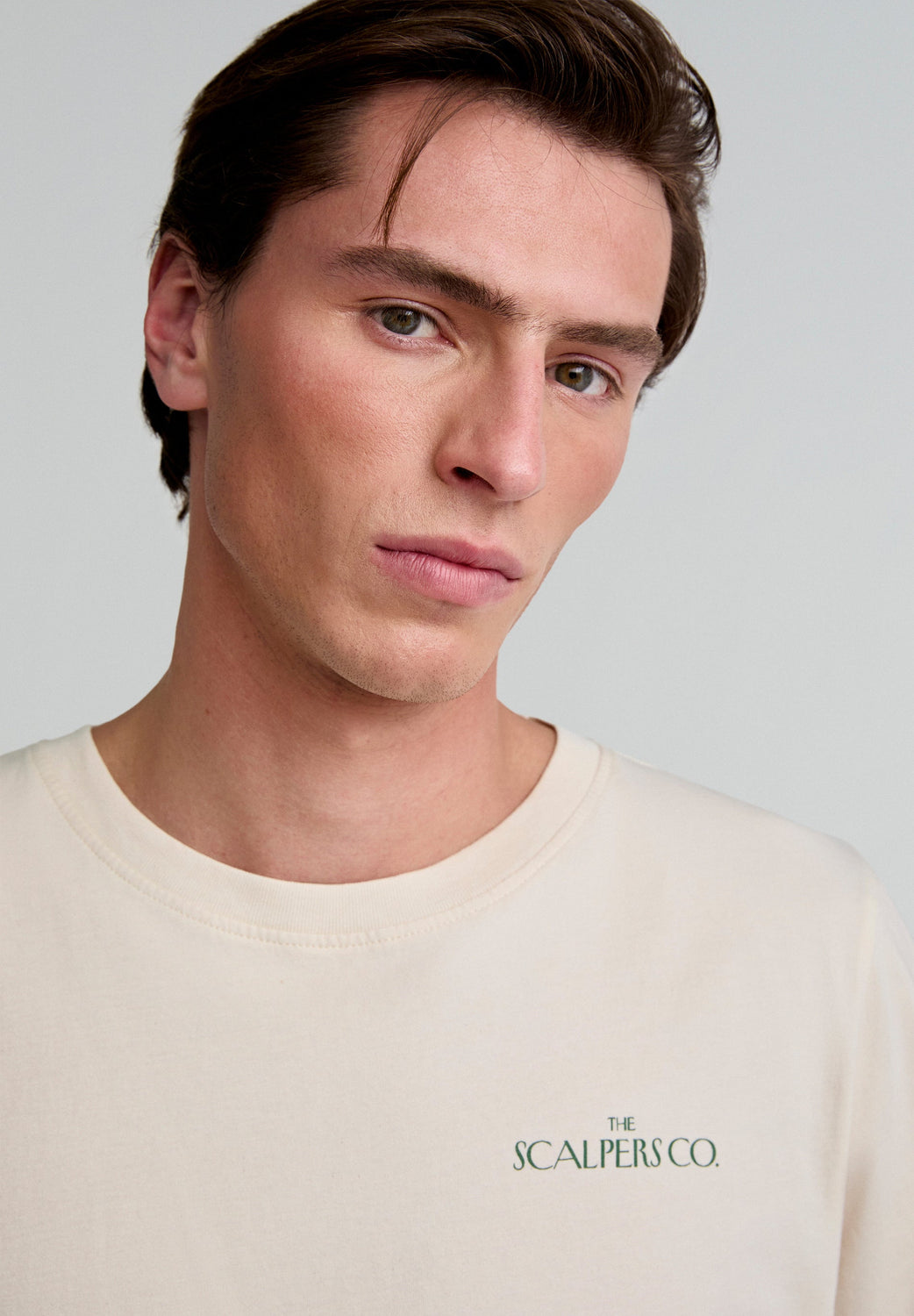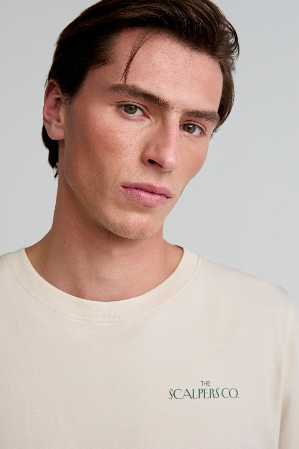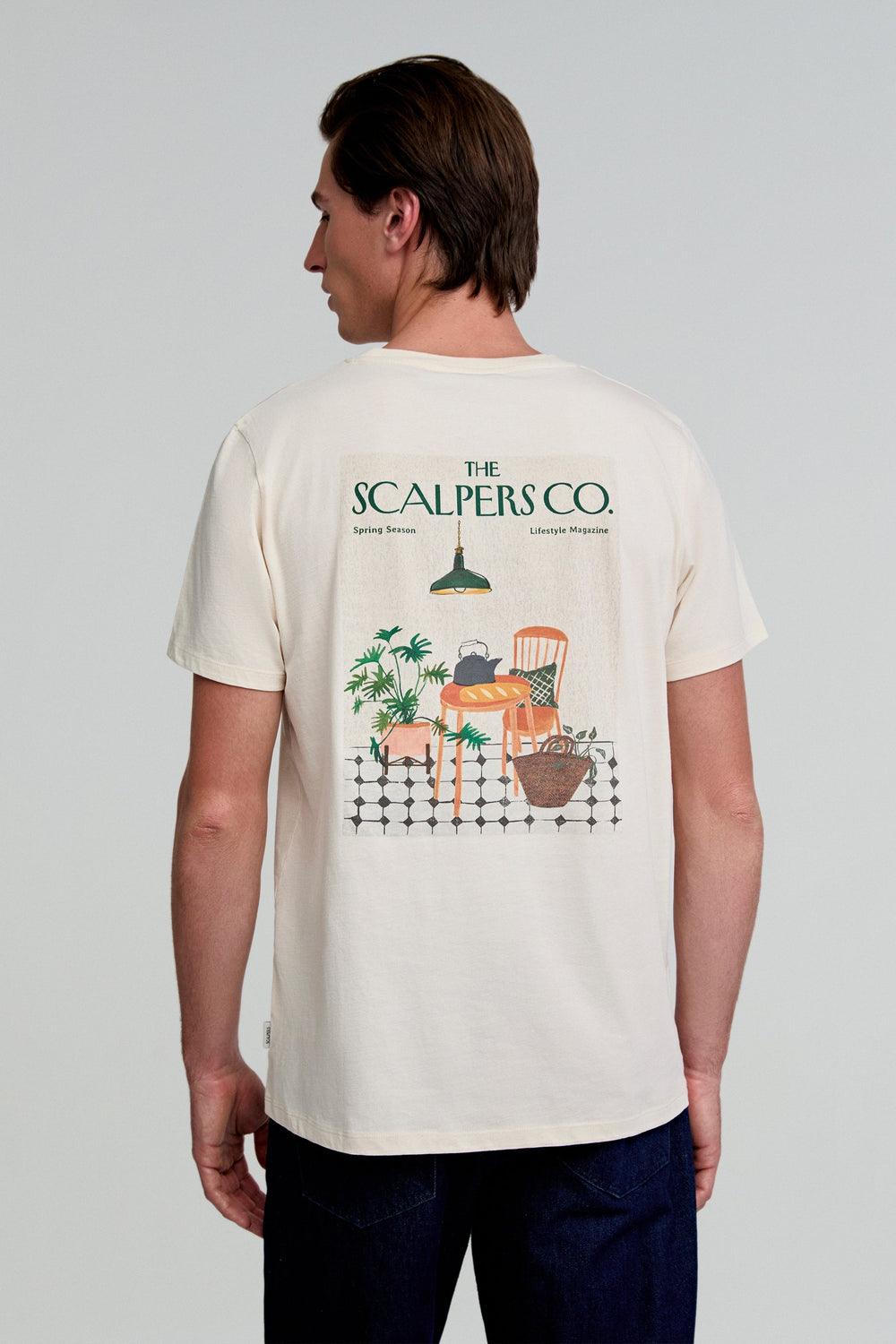 T-shirt com padrão atrás confecionada em 100% algodão BCI. Regular fit, decote redondo e manga curta.
