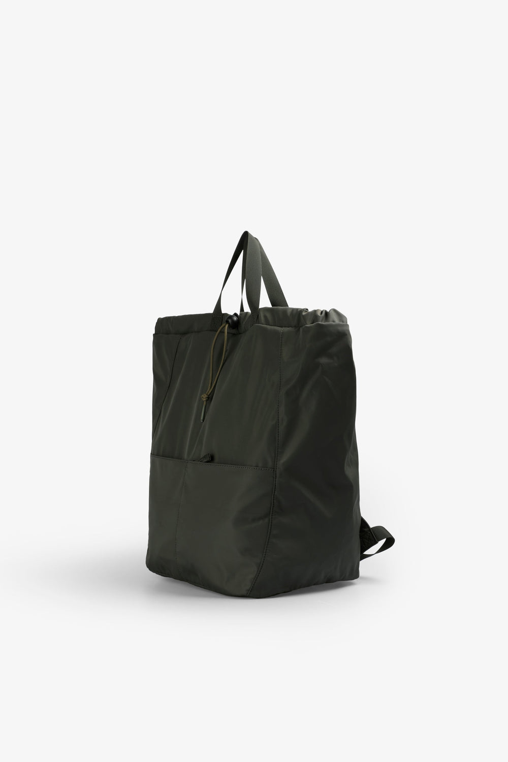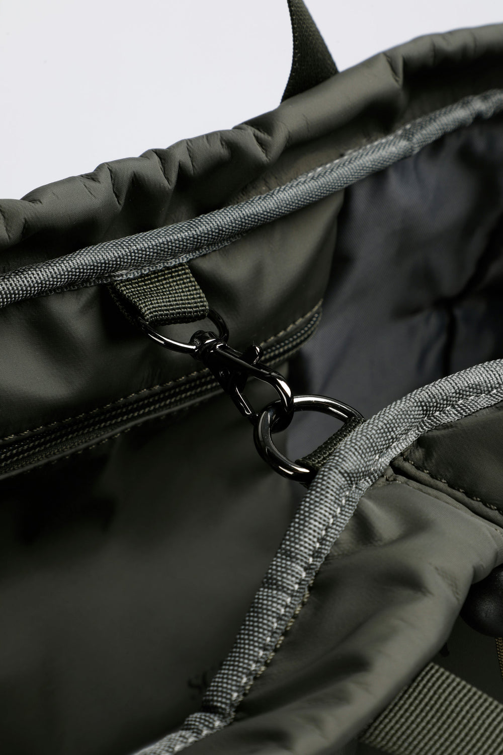 Mochila tipo bolsa em tecido técnico, fecho com gancho, alças na parte superior e bolsos exteriores. Logótipo no tom à frente.