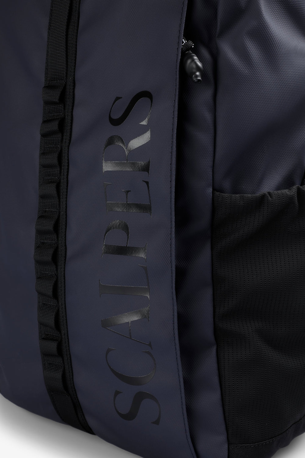 Mochila técnica com bolso exterior com fecho de correr, bolsos laterais ajustáveis, pegas e costas acolchoadas de malha. Bolso interior com fecho. Logótipo no tom à frente.