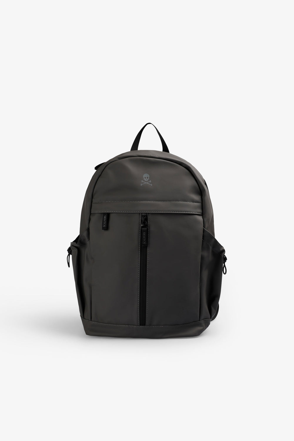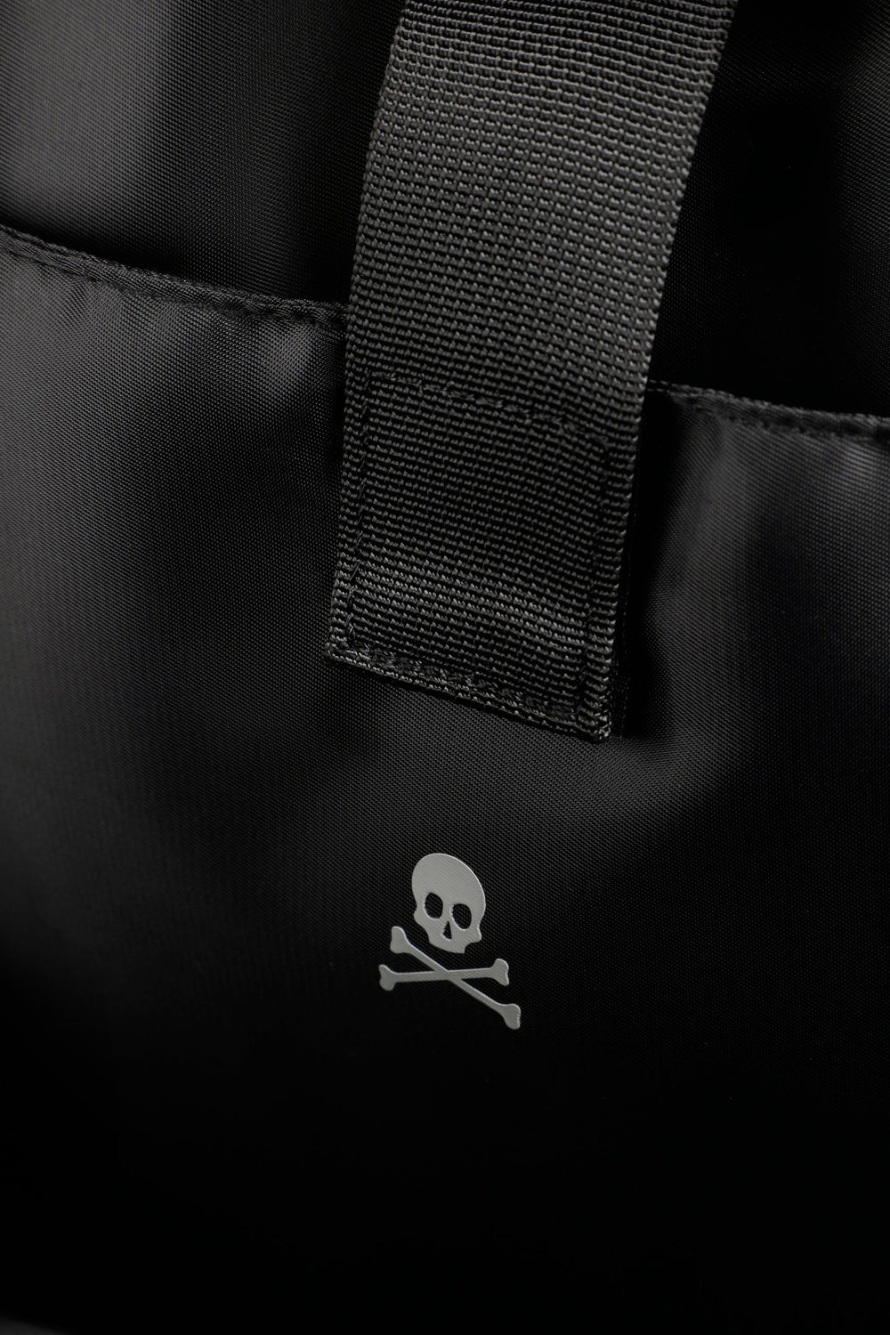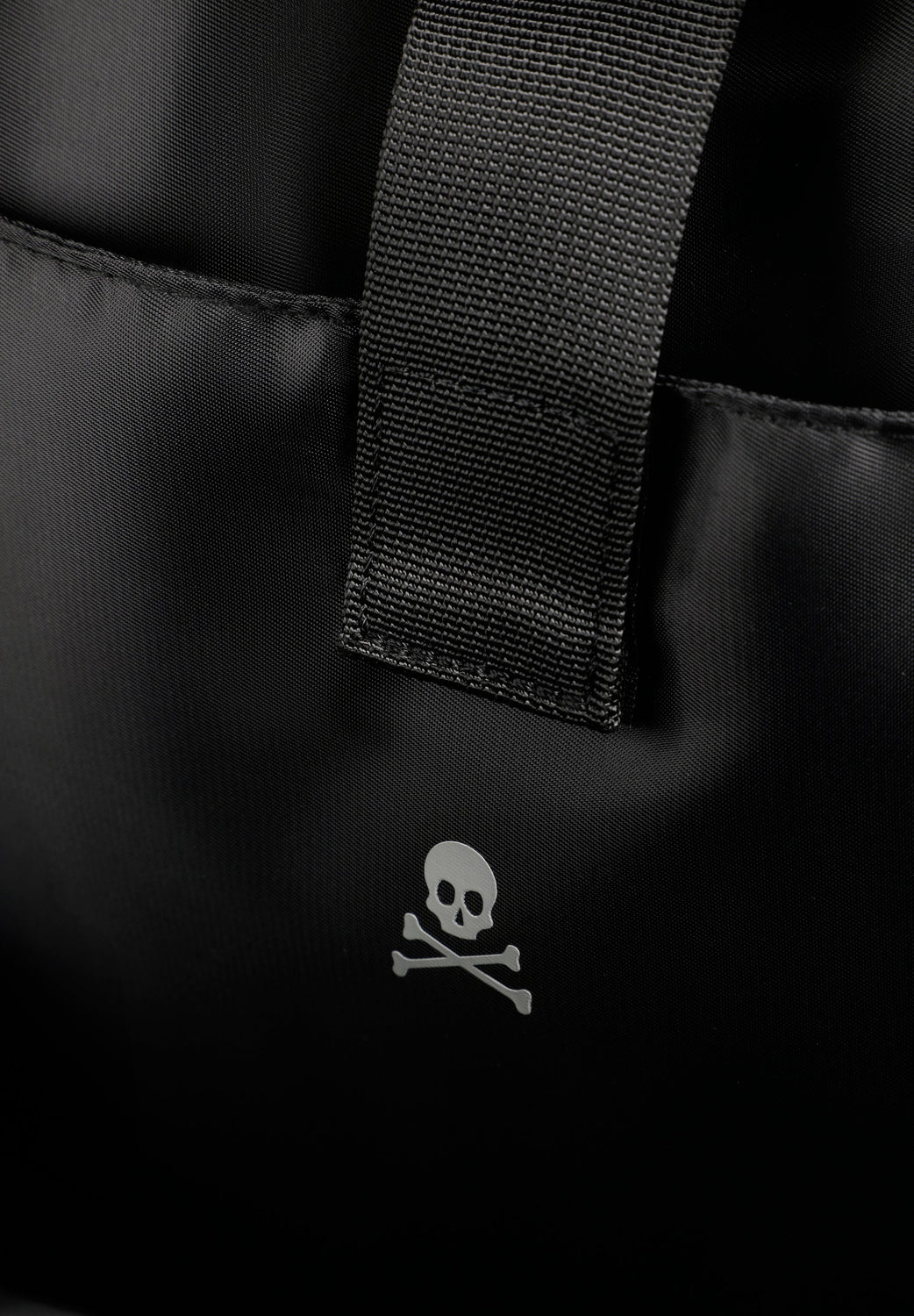 Mochila confecionada em tecido técnico. Duplo bolso frontal exterior. Fecho ajustável com fivelas. Pormenor de skull em padrão à frente e atrás. Alça superior. Ajustes de fecho nas laterais e atrás. Reforço acolchoado nas costas.